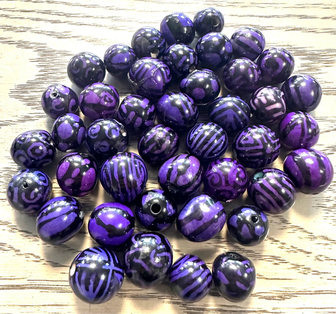 Bombona Ball Beads. 20 Purple Patterned Pieces.