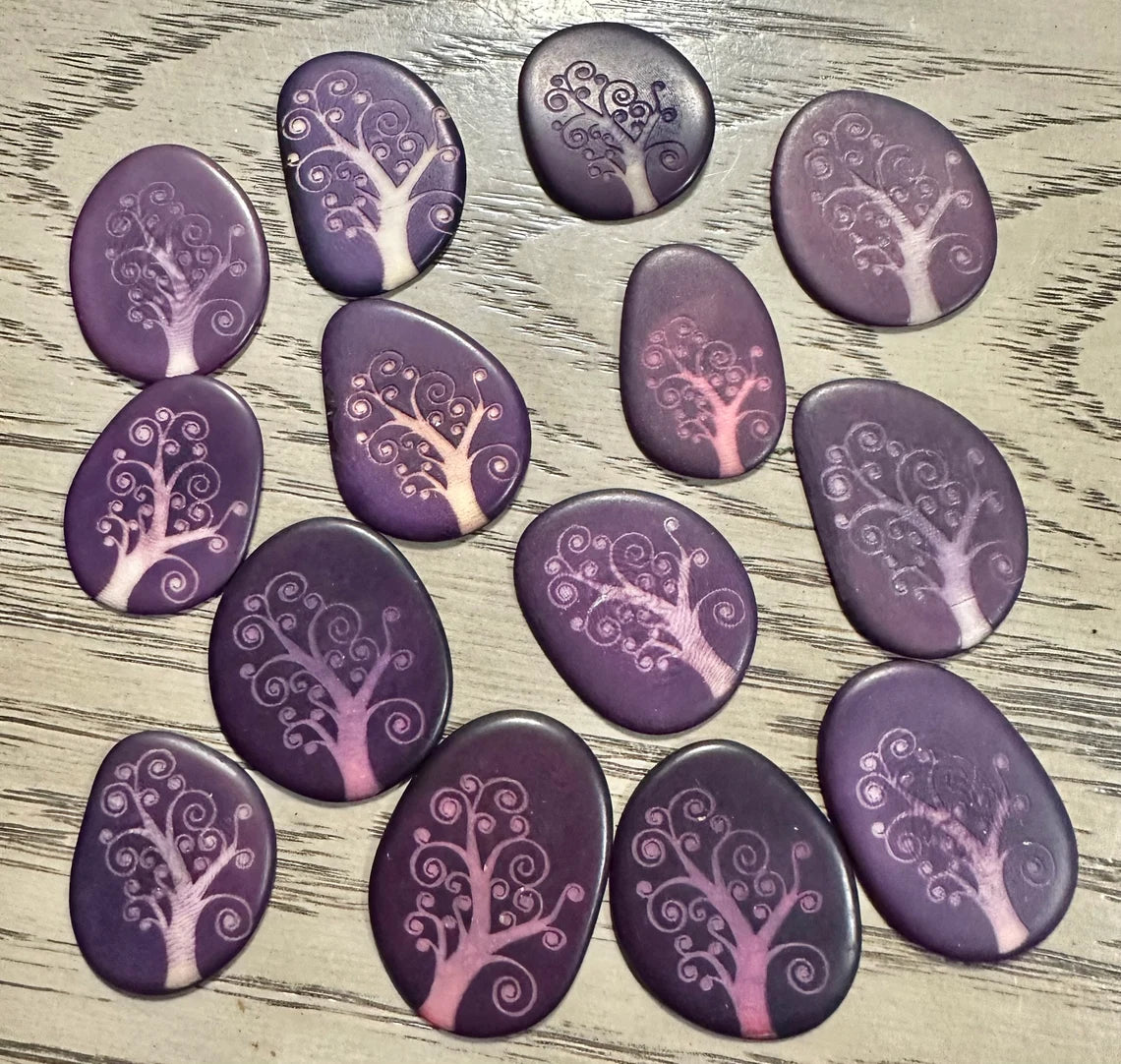 Tagua Slices Beads. 20 Purple Engraved Pieces