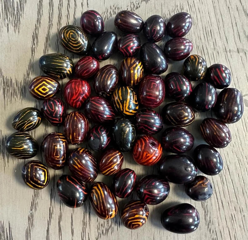 Organic Bombona Small & Big Balls. Black, Yellow, Brown and Red Colors with Pattern. Beads from Colombia. Natural Jewelry Making Supplies. 25 Balls of Bombona with Pattern