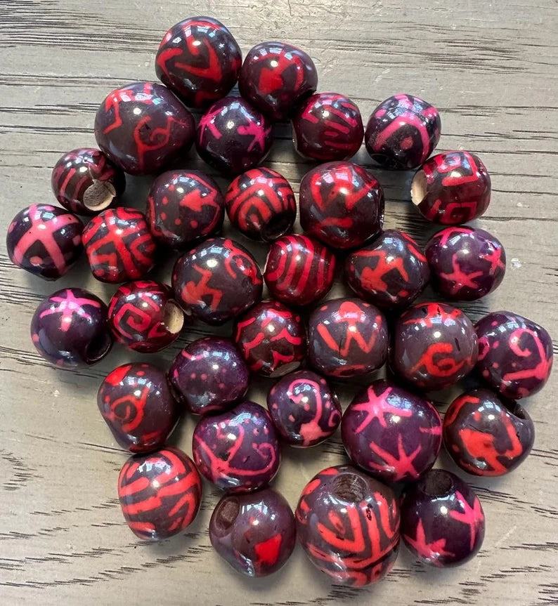 Bombona Ball Beads. 25 Pink, Red and Purple Patterned Pieces.