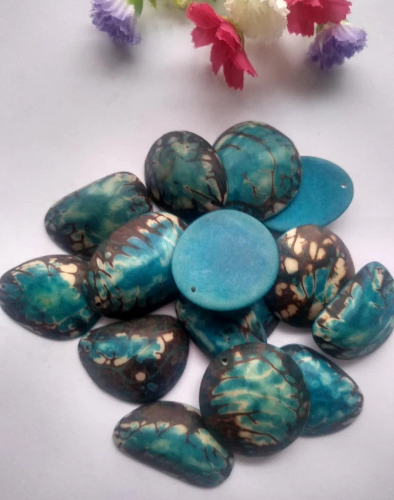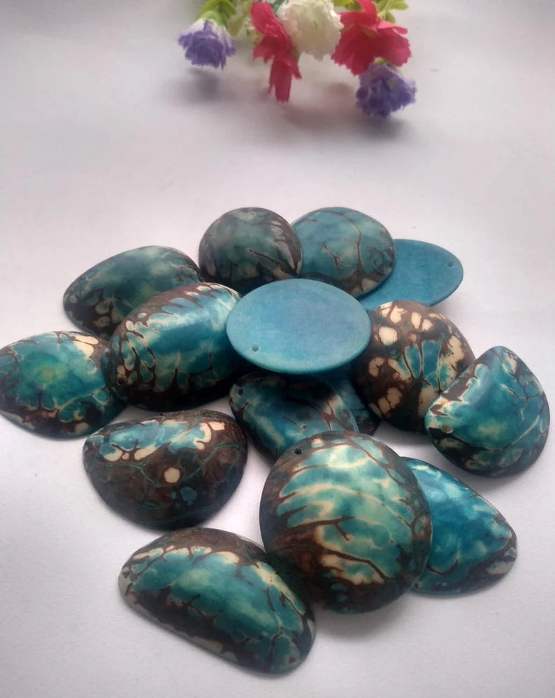 Blue Tagua Oval Beads. Natural Seed from Colombia Rainforest. 15 Beads 4 x 3.cm. Top Drilled. Natural Jewelry Making. Free Shipping