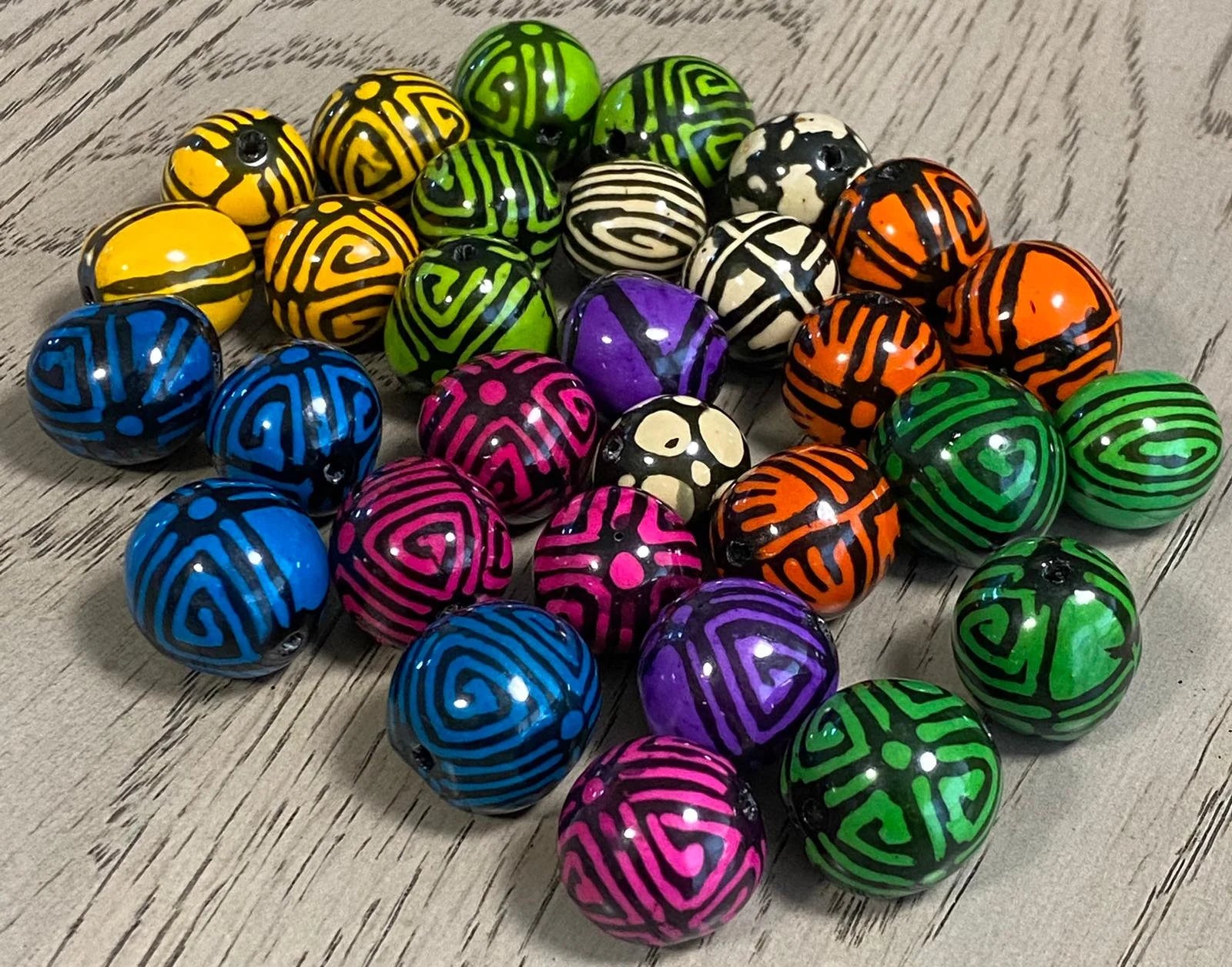 Bombona Ball Beads. 30 Orange Patterned Pieces.