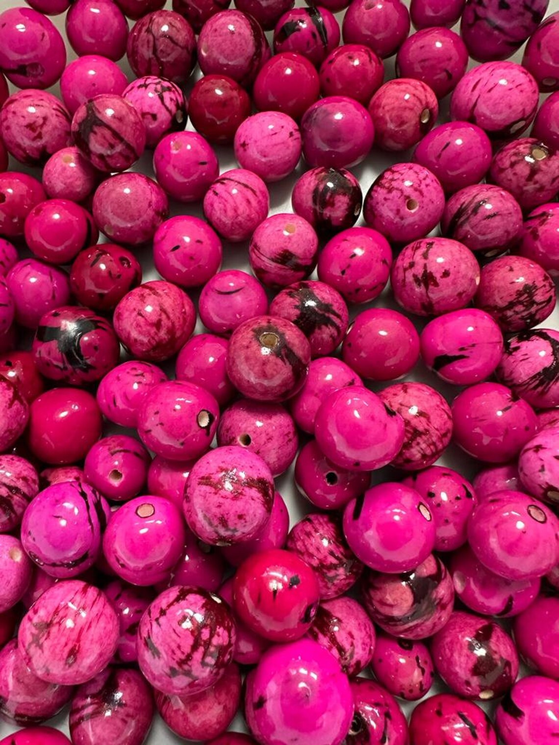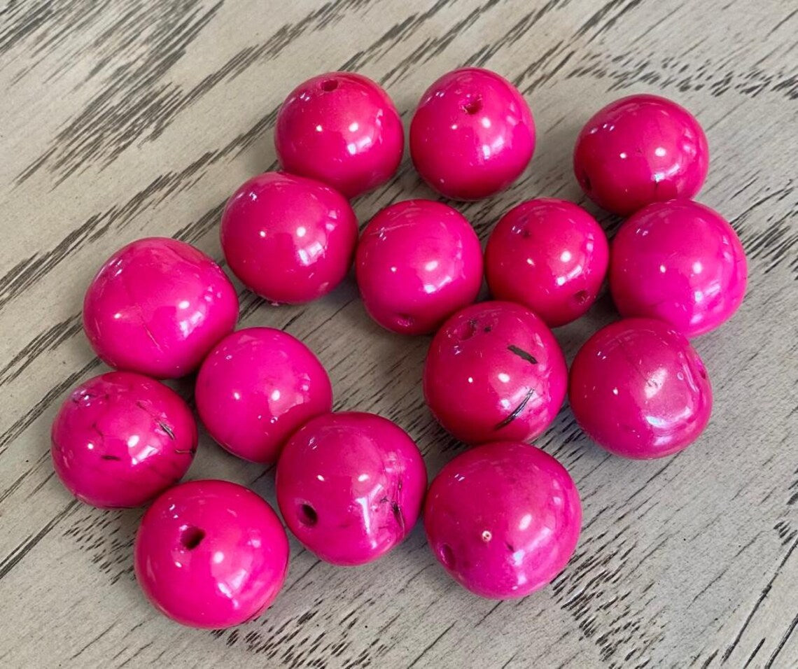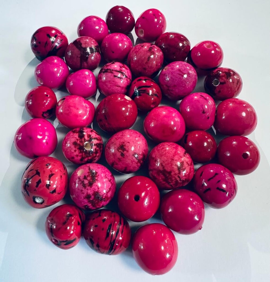 Bombona Beads. 30 Bombona Balls. Mix of Pink Colors. Size: 2 - 2.5 cm. approx. Top Drilled. Natural, Eco Friendly Jewelry Making Supplies