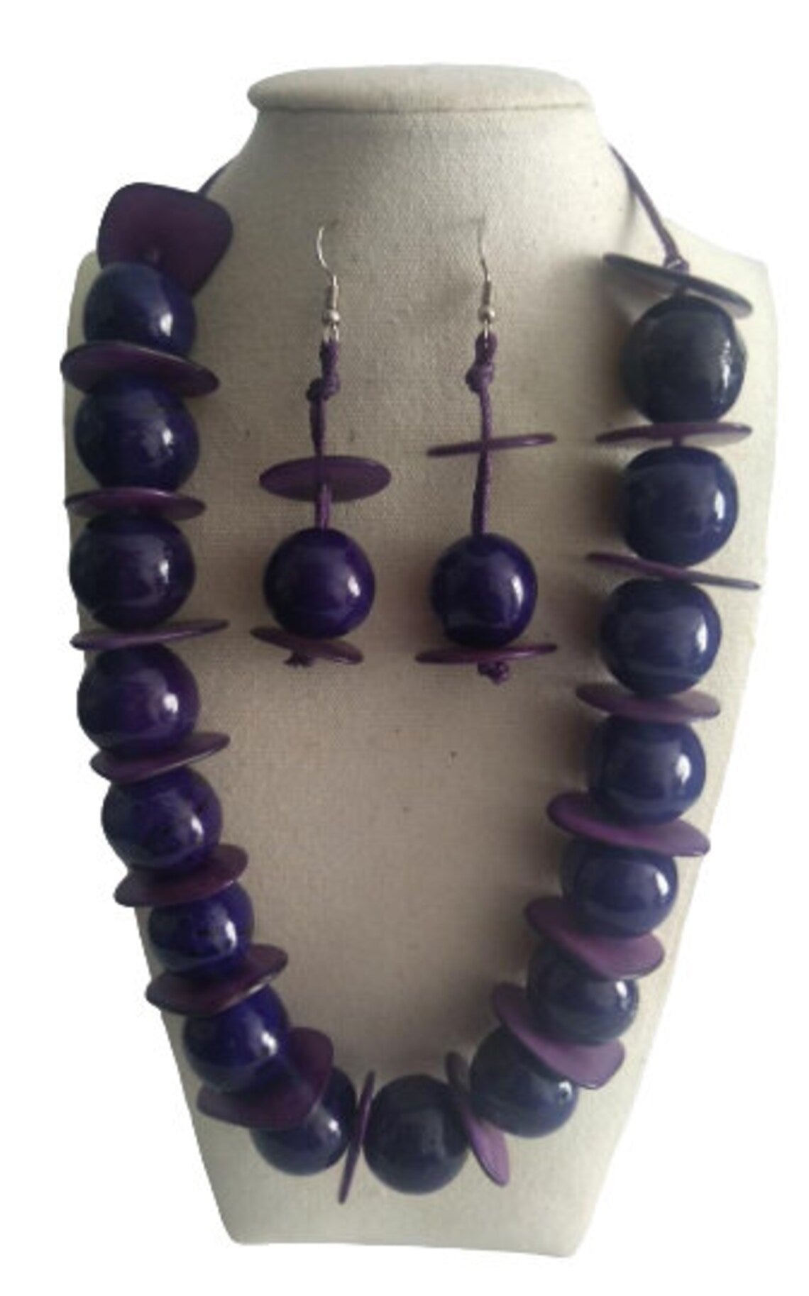 Bombona Seed Necklace and Earrings Set in Purple Color