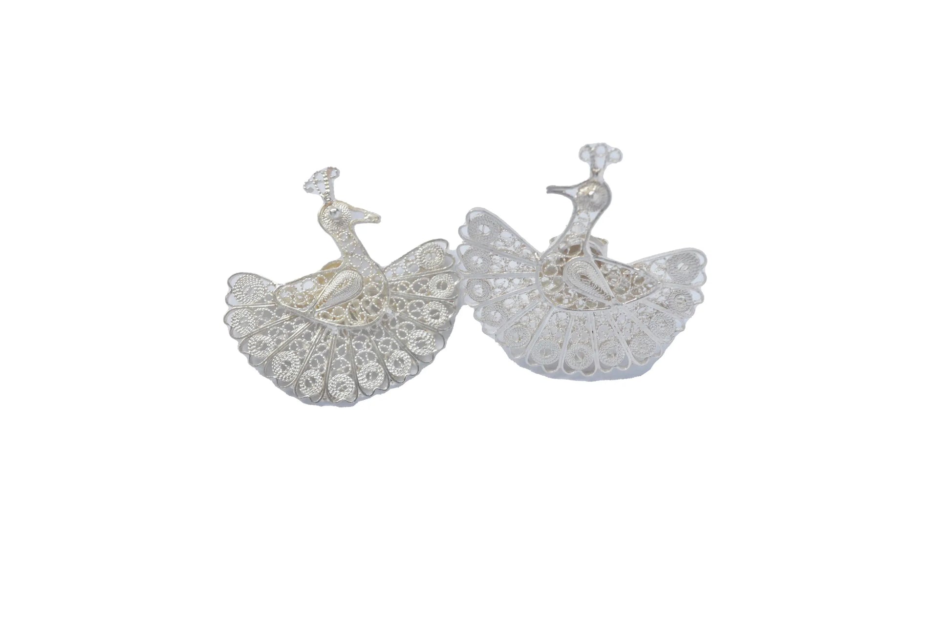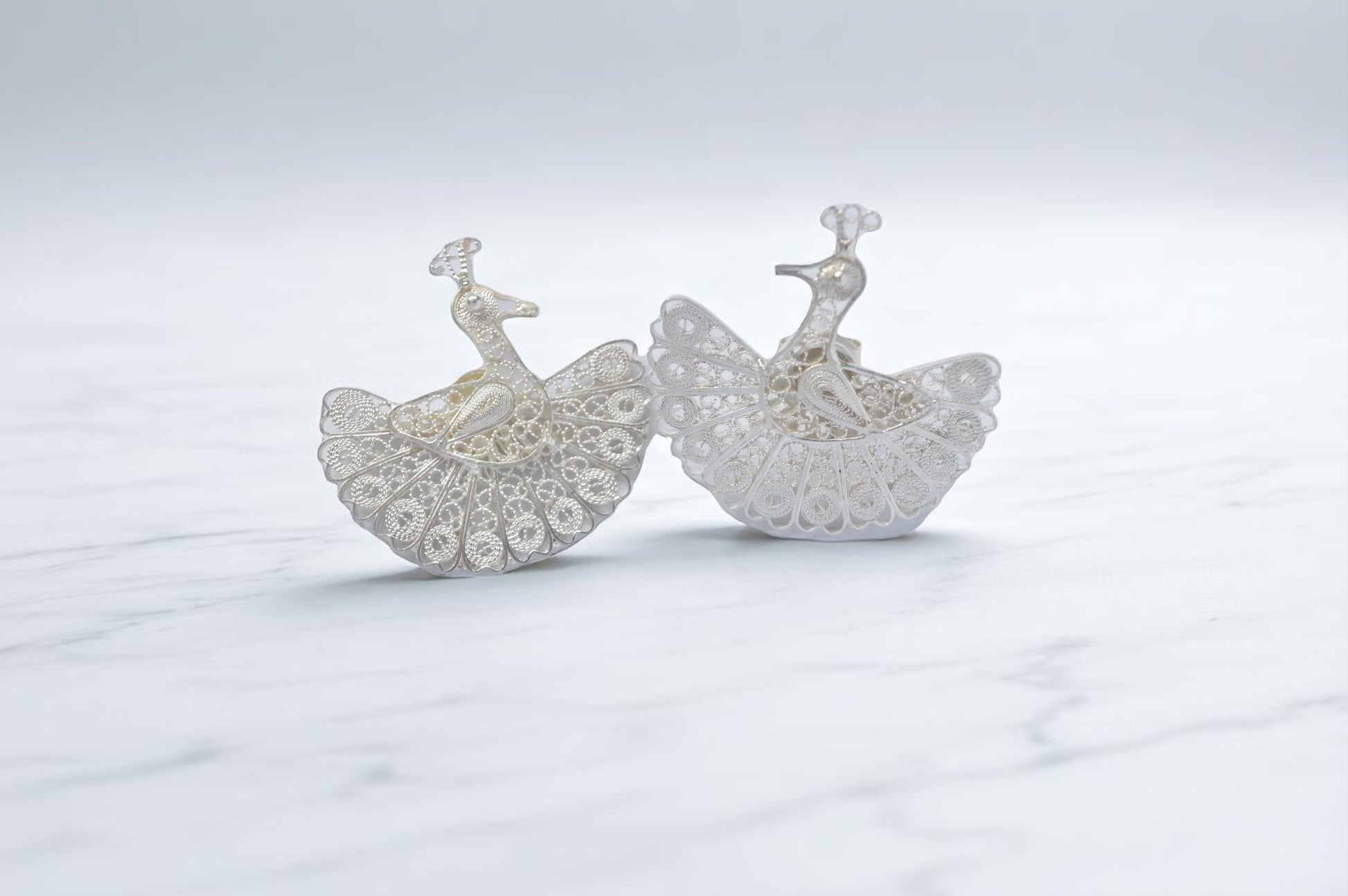 Peacock Earrings Handcrafted Earrings Cat Lovers Animal Jewelry from Mompox - Colombia Silver Filigree Earrings Dangle Stylish Pretty Boho