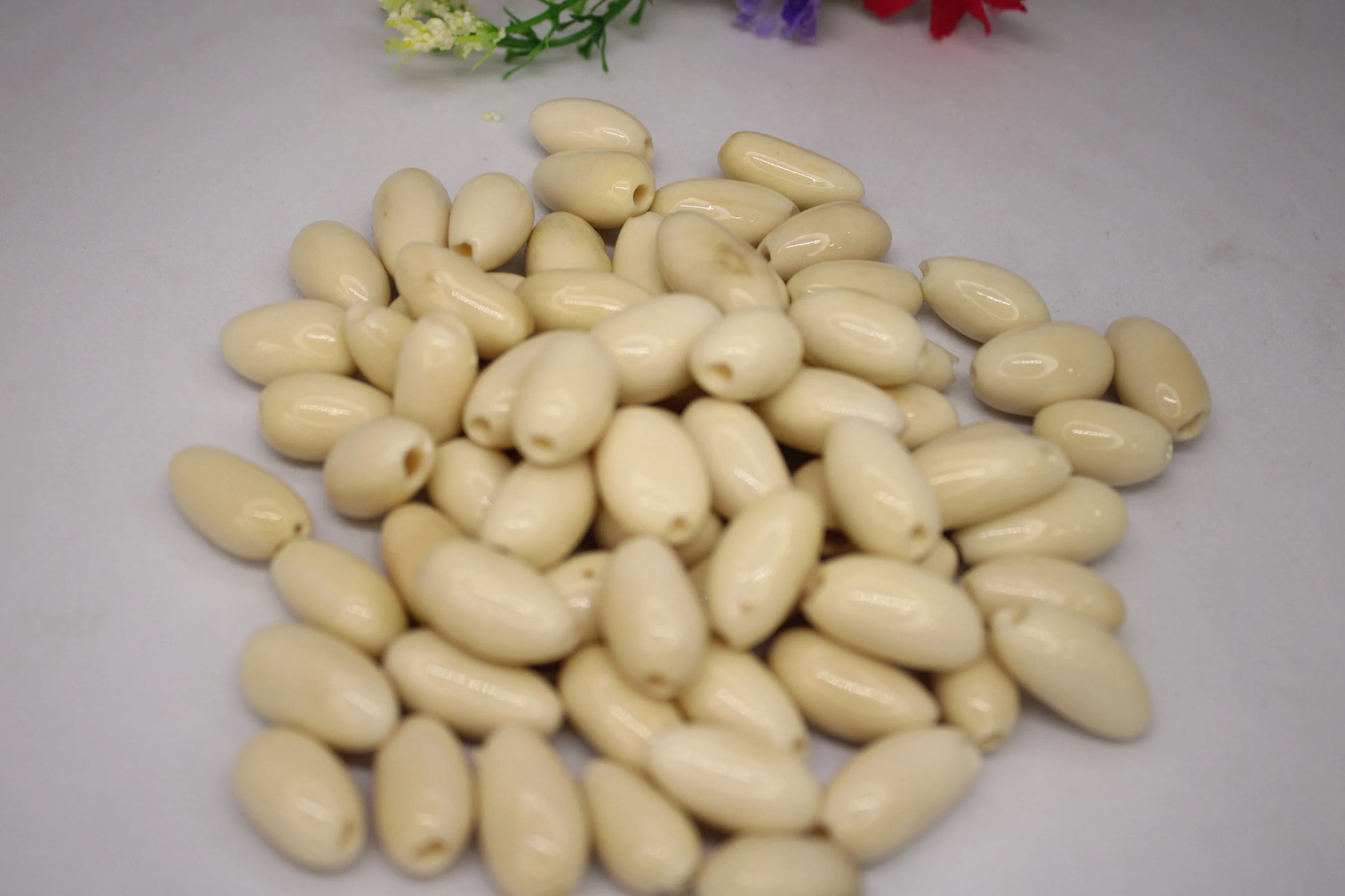 Seed beads | Beige beads made of camajuro seeds from Colombia. Size: 2.5 x 1.5 cm. approx. Natural beads. Pack of 80 beads
