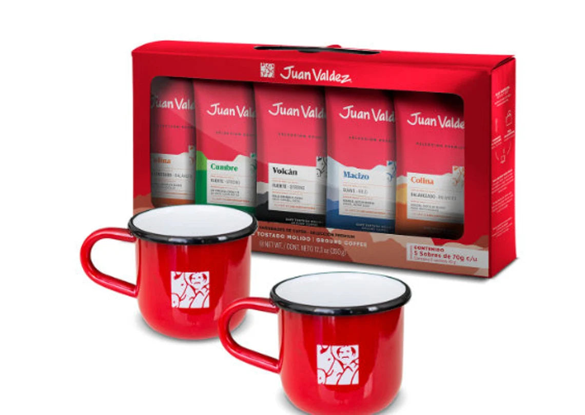 Coffee Lover Gift Box from Juan Valdez. Coffee 5 Sachets + 2 mugs of peltre