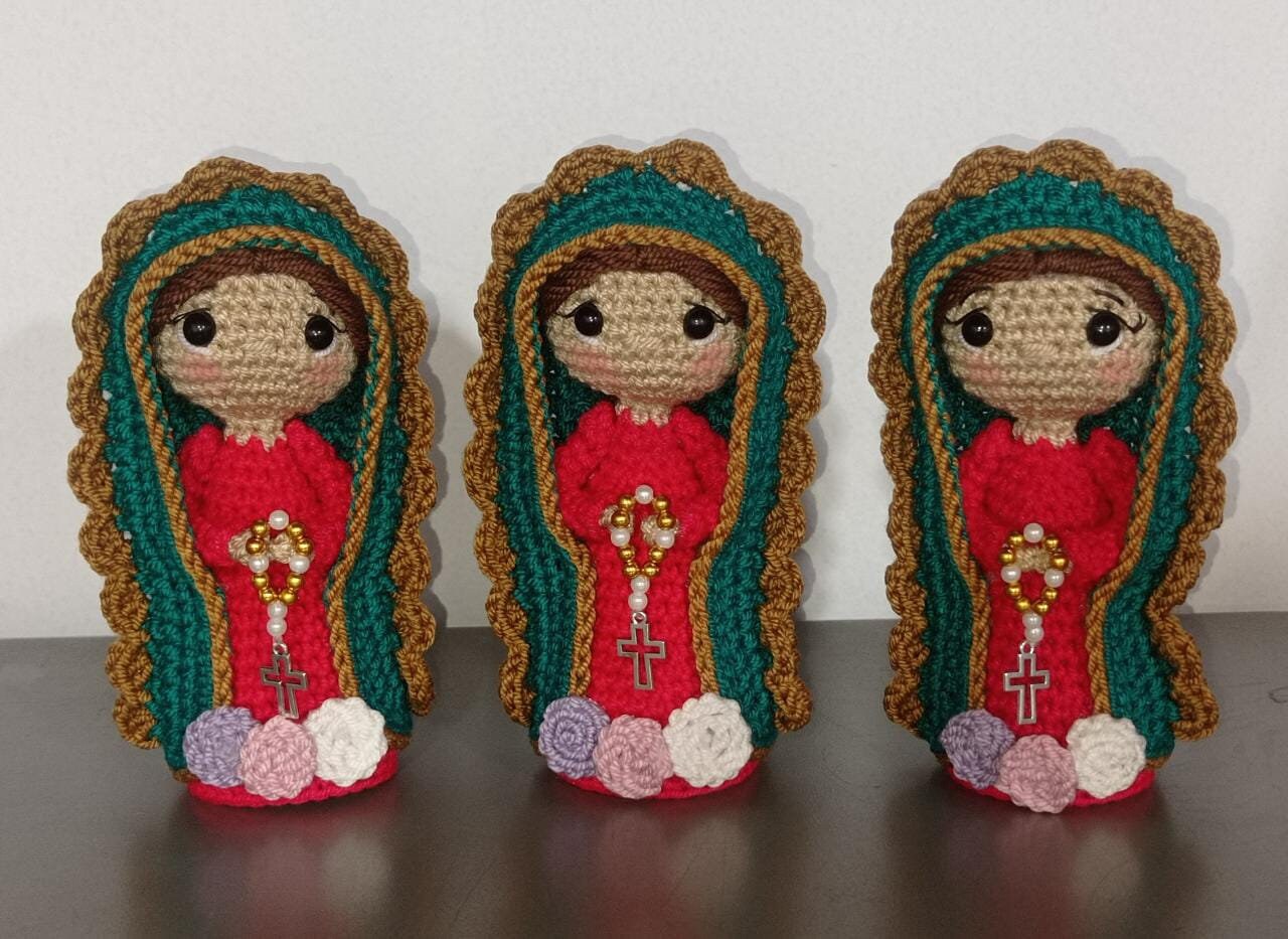 Lady of Guadalupe | Holy Mary | Virgin Mary | Blessed Virgin Mary. 100% Handmade Miniature Crochet Doll. Amigurumi. Size: 4 x 1.5 inches. Miniature Holy Mary.