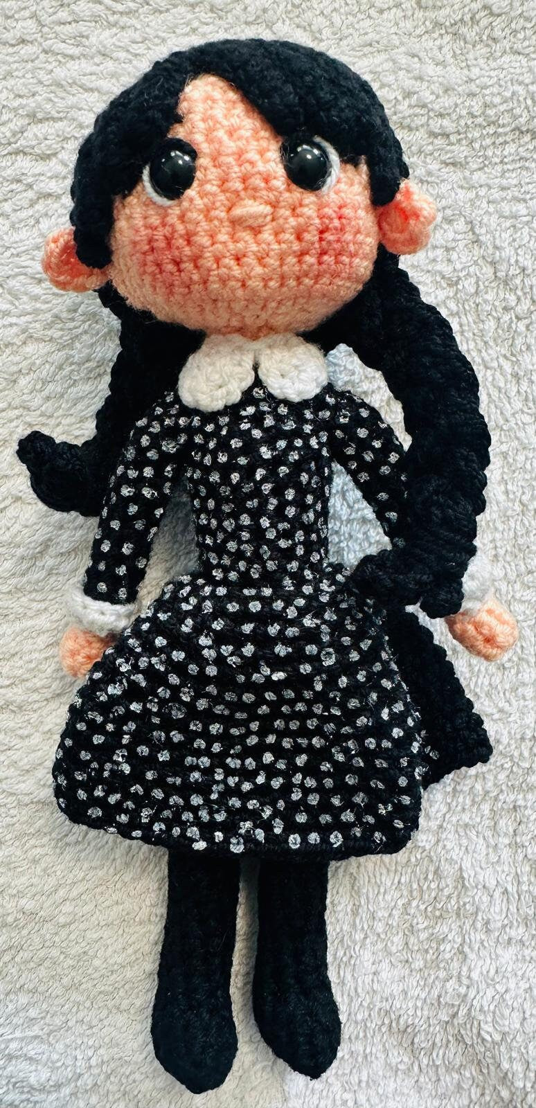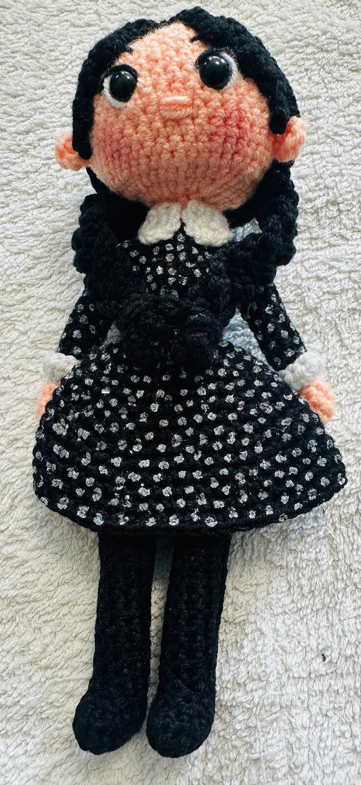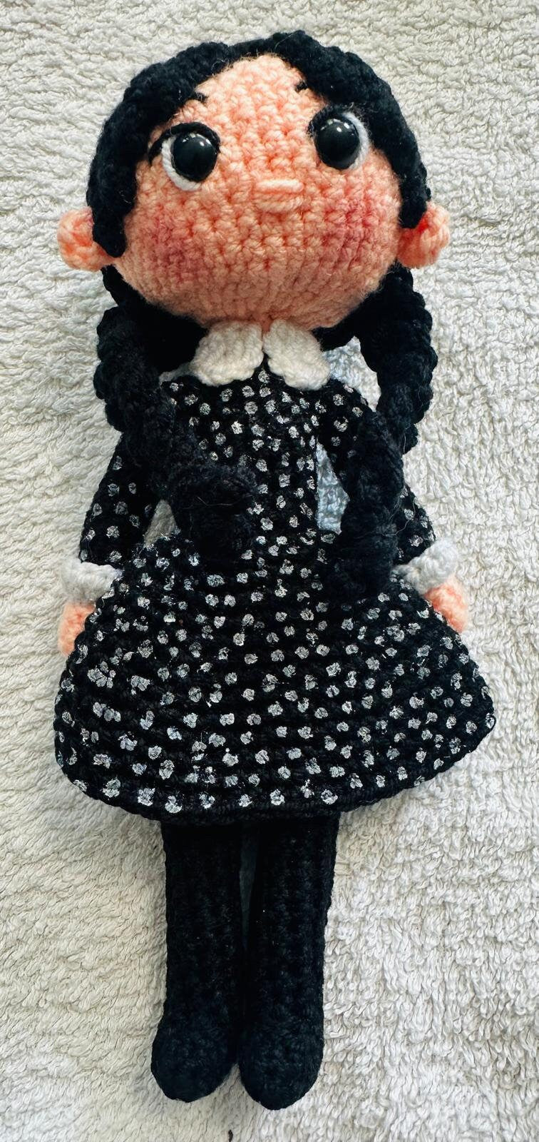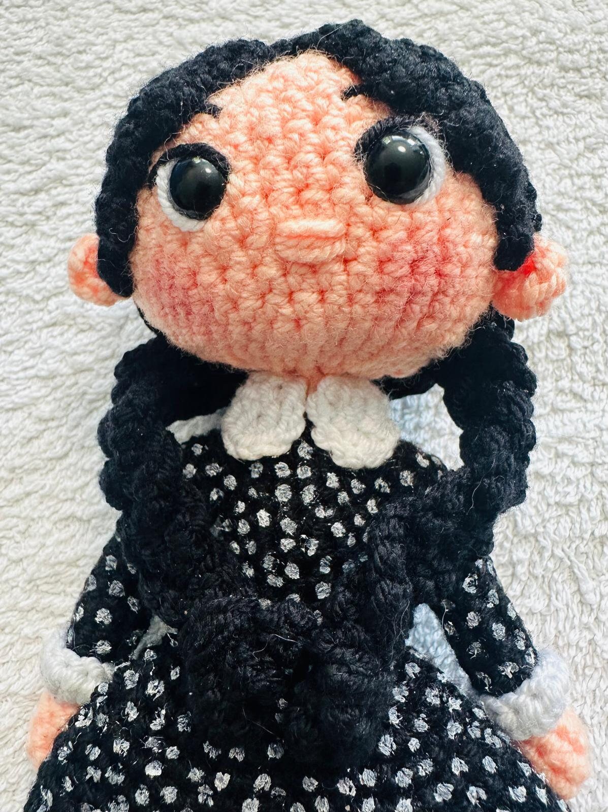 Wednesday addams, crochet, handmade, Addams family, Merlina crochet doll, Wednesday Addams handmade