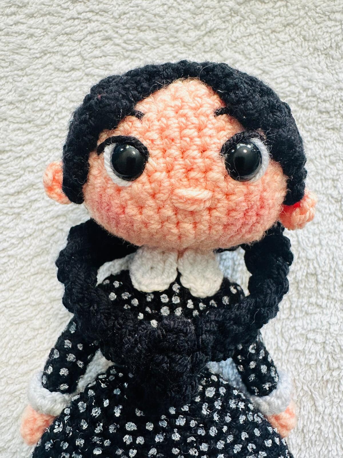 Wednesday Addams Doll | Wednesday Crocheted Doll | Wednesday Amigurumi | Addams Family | Horror Gothic Crochet Doll Handmade in Crochet