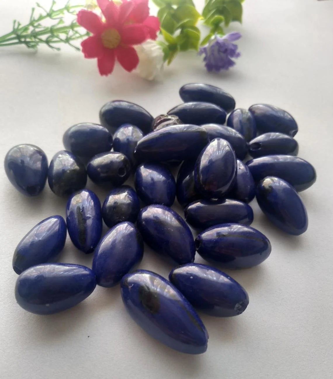 Dark blue beads made of camajuro seeds from Colombia. Size: 2.5 x 1.5 cm. approx. Natural beads. Pack of 30 beads. Free Shipping.