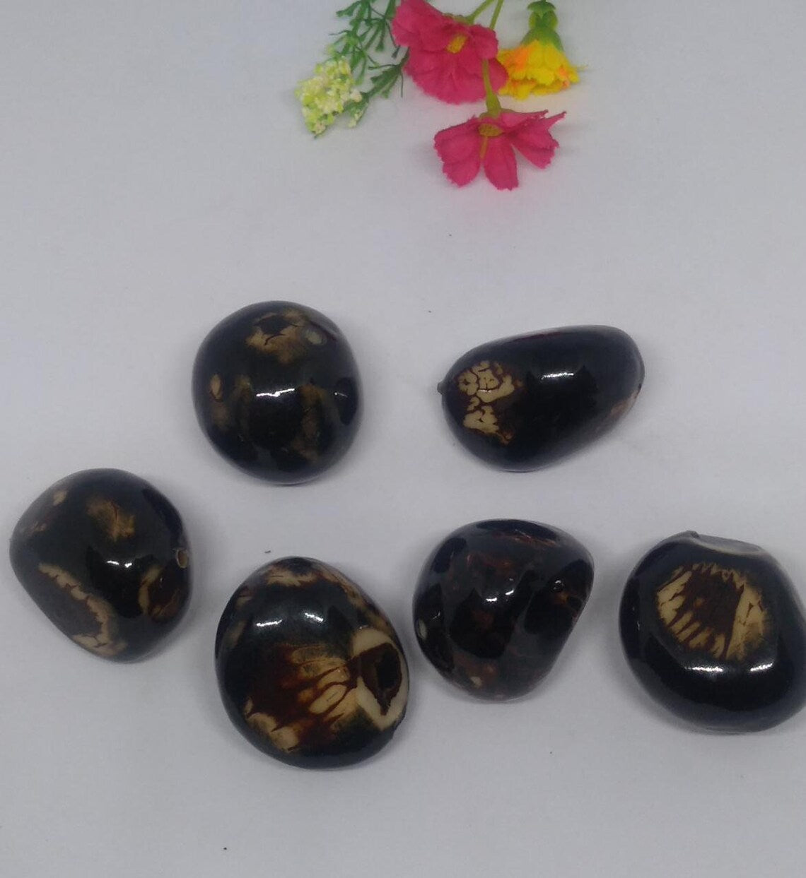 Dark brown tagua from Colombian. Small. Top drilled, 1 hole, 6 pieces. 4 x 3.5 cm. Woodwork. Natural jewerly supplies. Free Shipping.