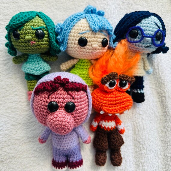 Inside Out Set of 5 Amigurumi Crochet Dolls Kids Gift Birthday for Movie Fans Disney Handmade Crochet Joy Sadness Anger Fear Disgust