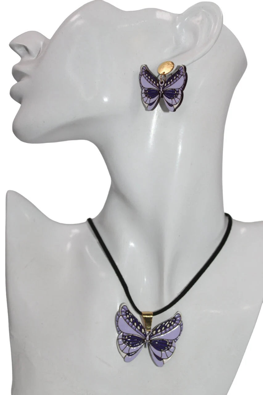 Wooden Handmade Butterfly Necklace Earrings Jewelry Unisex Style Fashion Collection