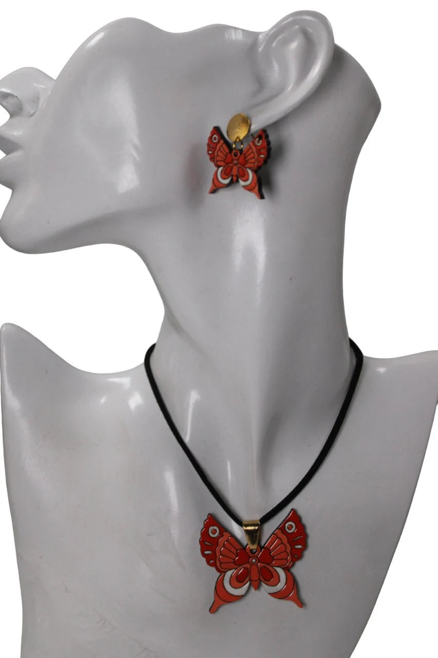 Laser Cut Red Butterfly Necklace and Earrings Set.