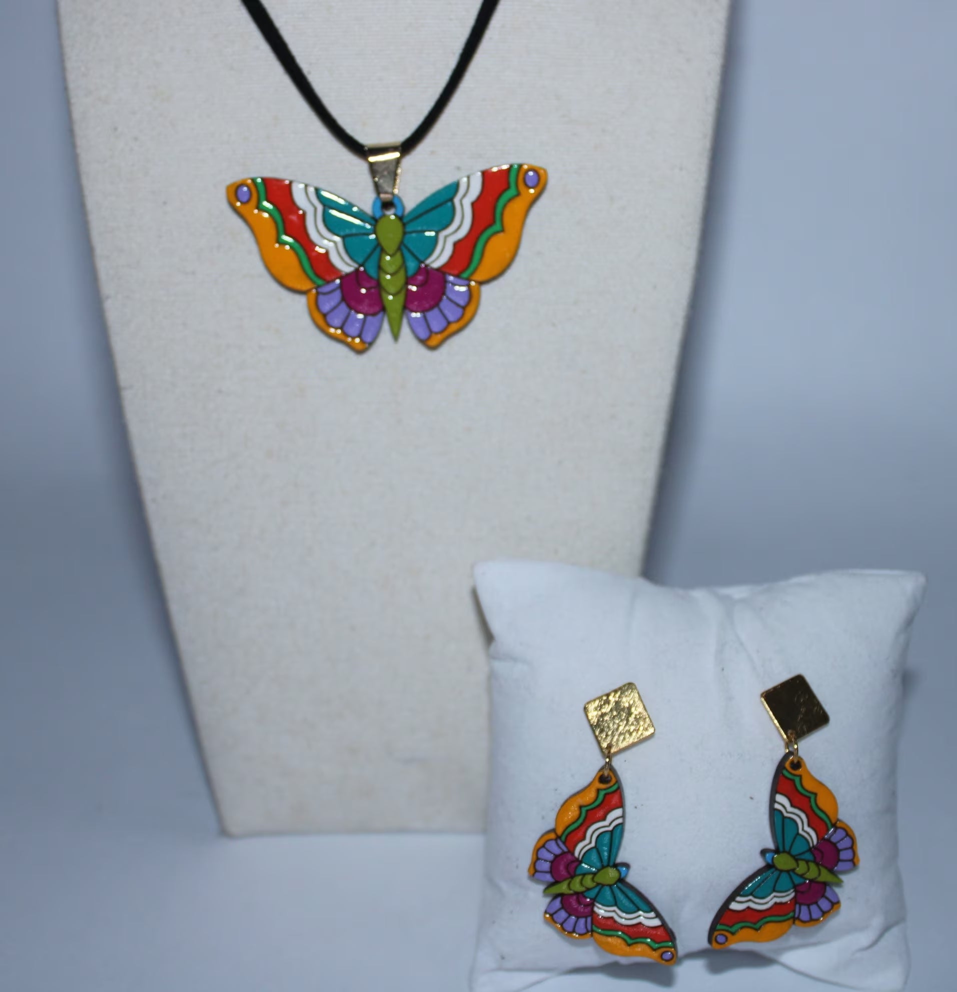 Laser Cut Wood Butterfly Necklace and Earrings Set.