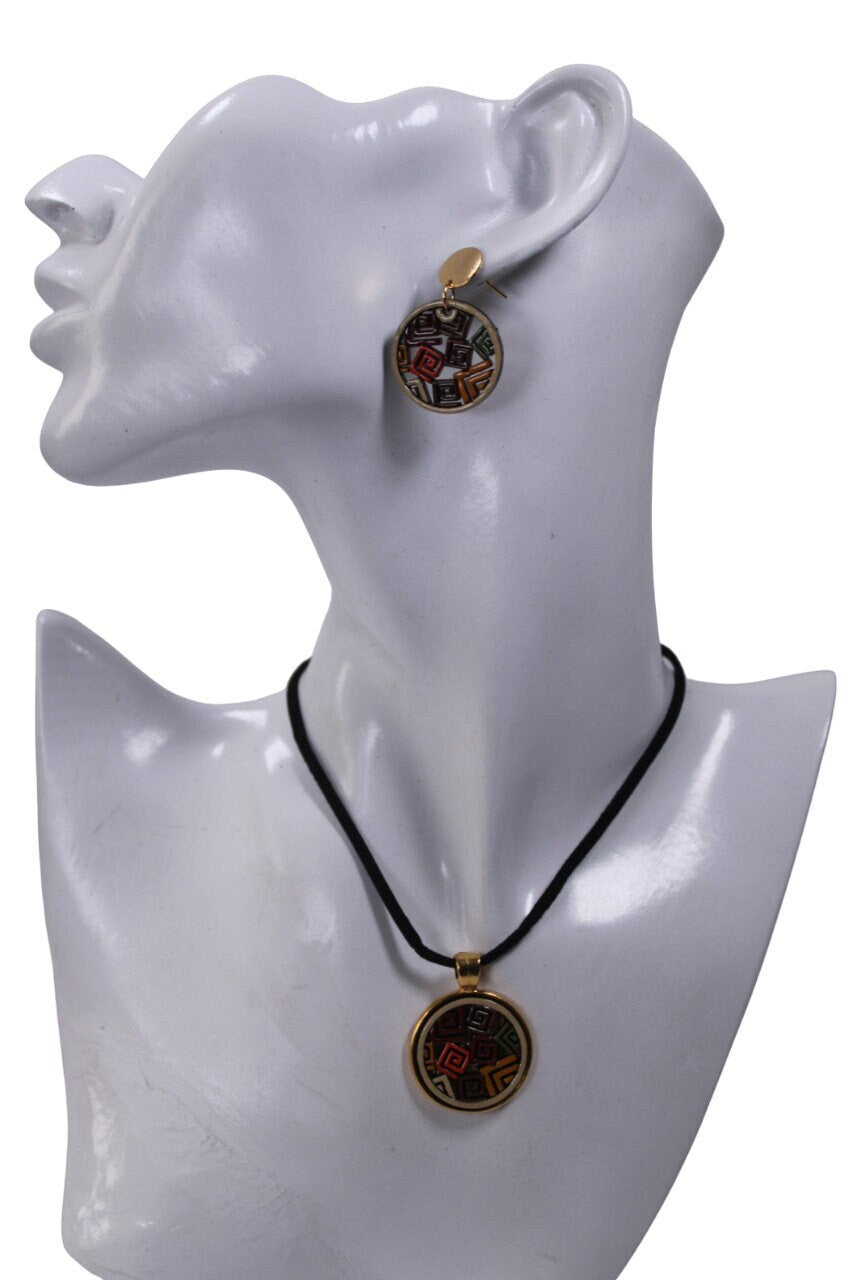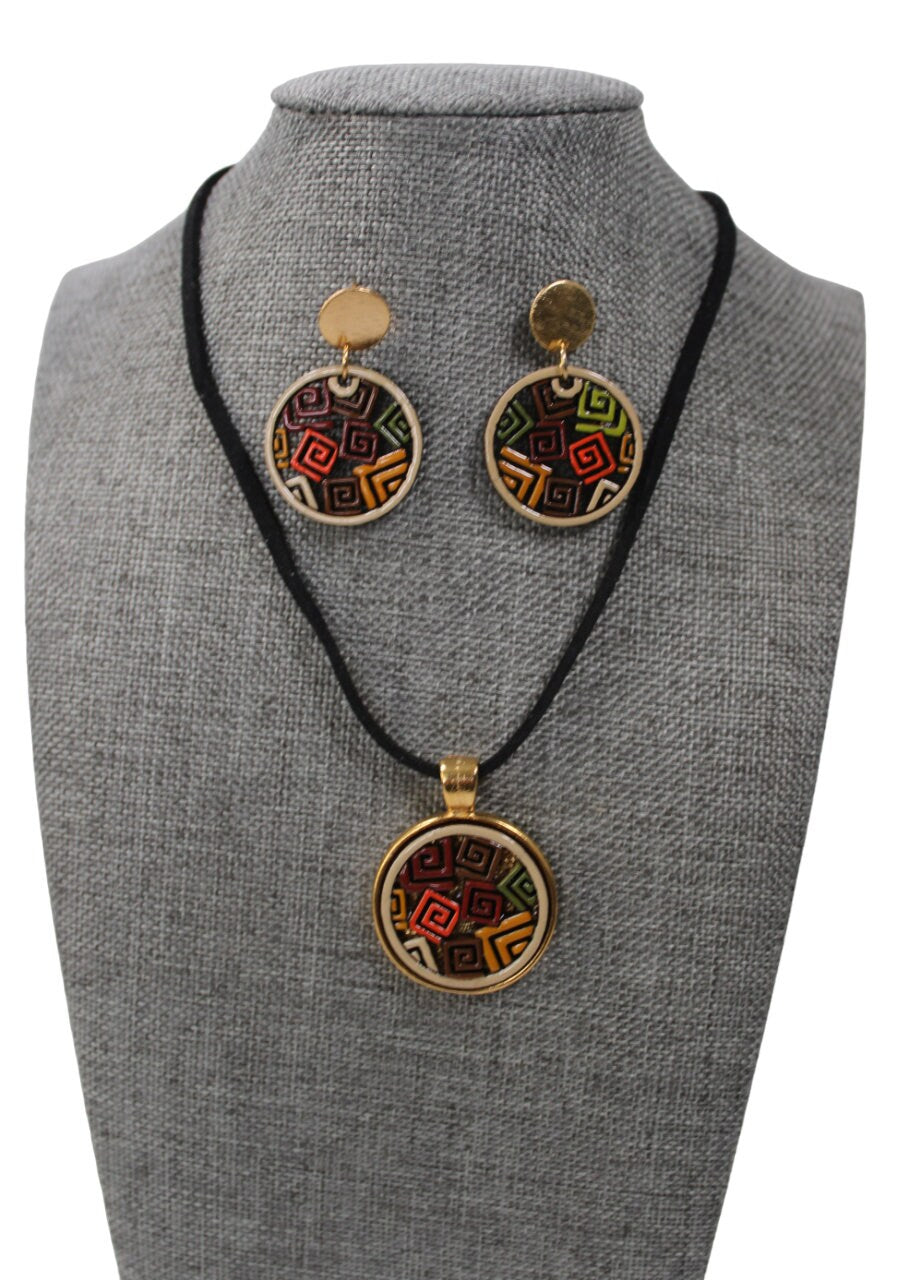 Wooden Handmade Figures Necklace Earrings Jewelry Unisex Style Fashion Collection
