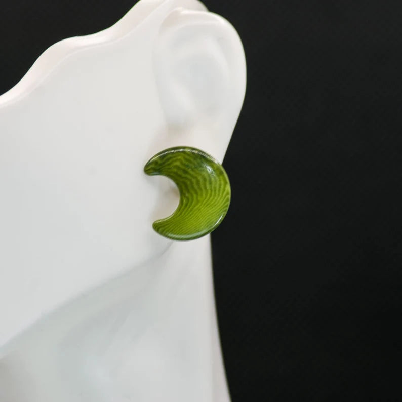 Moon earring. Statement green stud earrings. Handmade with tagua, vegetable ivory nut. Eco-friendly, organic, natural, ethical & sustainable jewelry