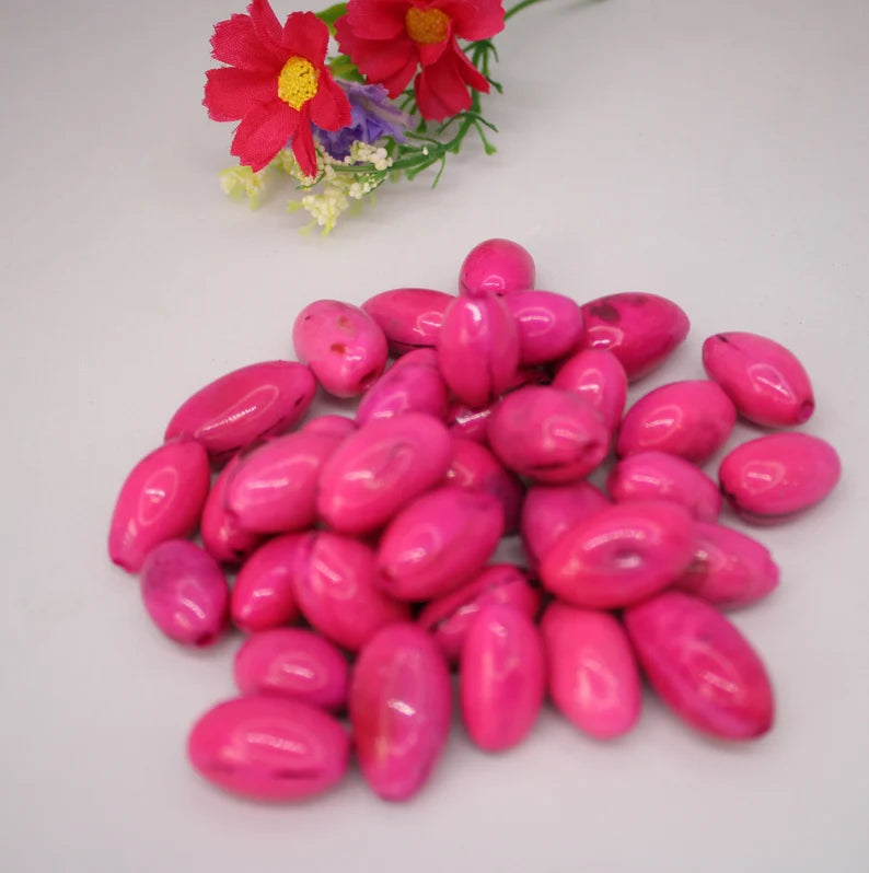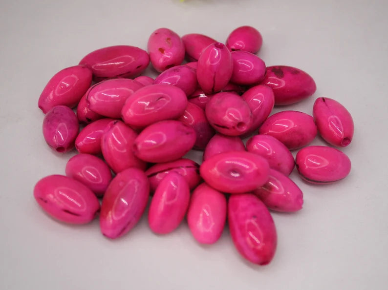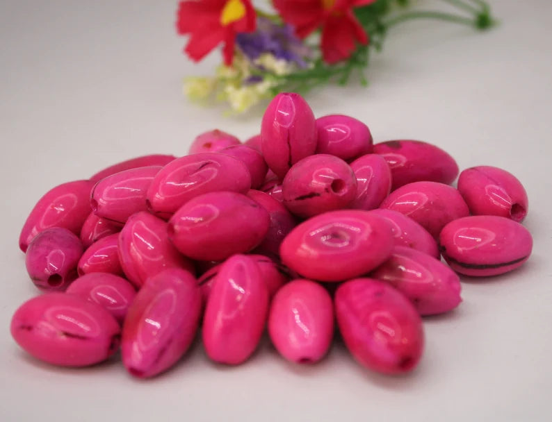 Pink beads made of camajuro seeds from Colombia. Size: 2.5 x 1.5 cm. approx. Natural beads. Pack of 30 beads. Free Shipping.