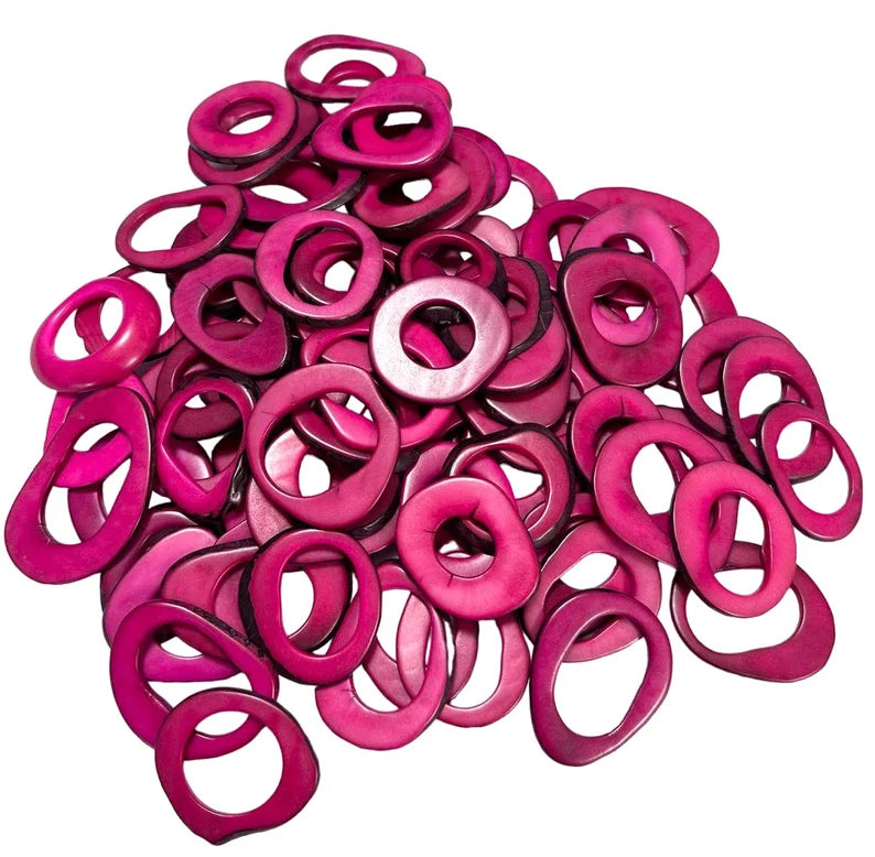 Pink / Magenta Tagua Beads, Hoops, Donuts, Tings, Discs. 20 pieces. Tagua from Colombia. Drilled or Undrilled