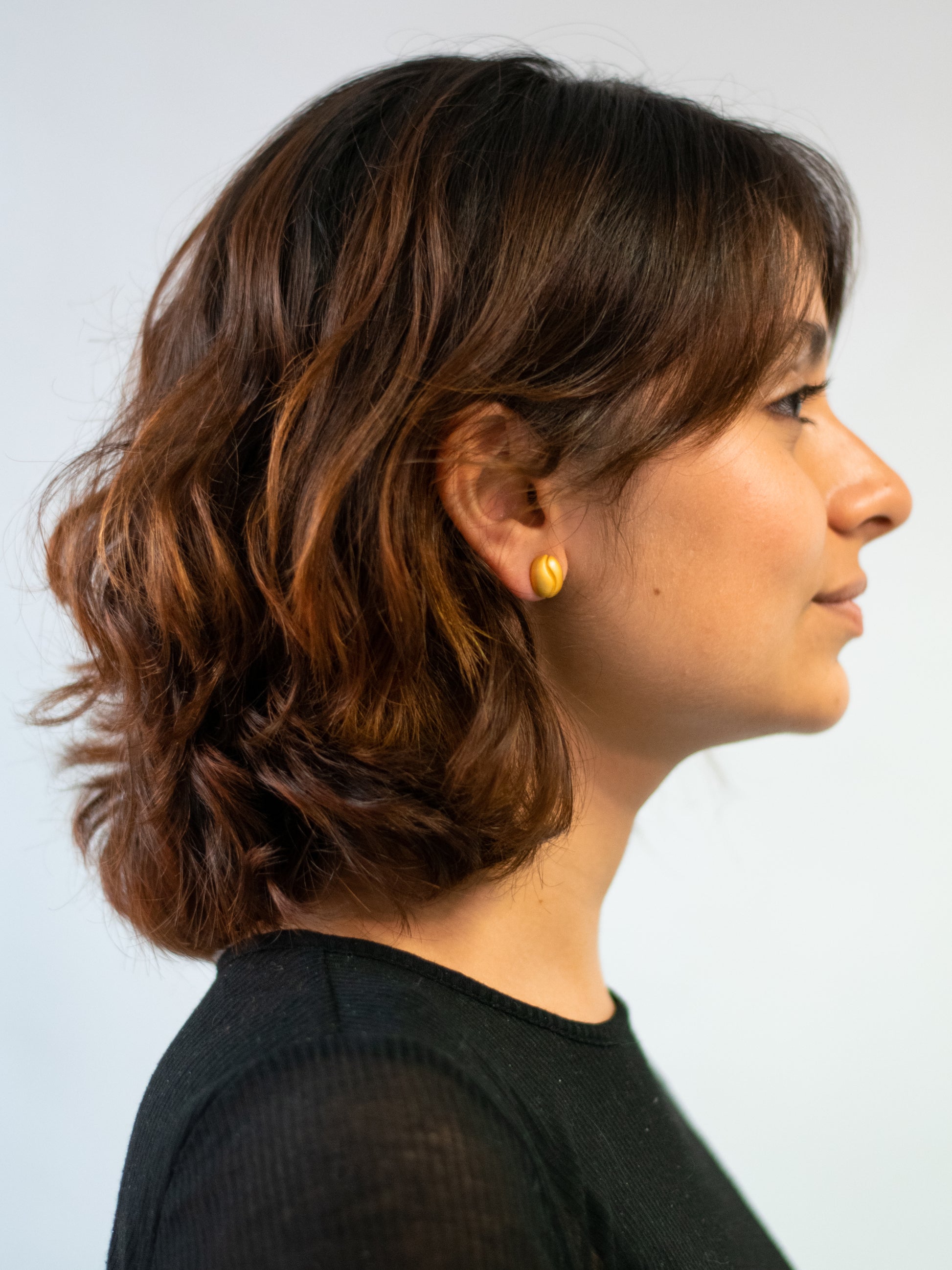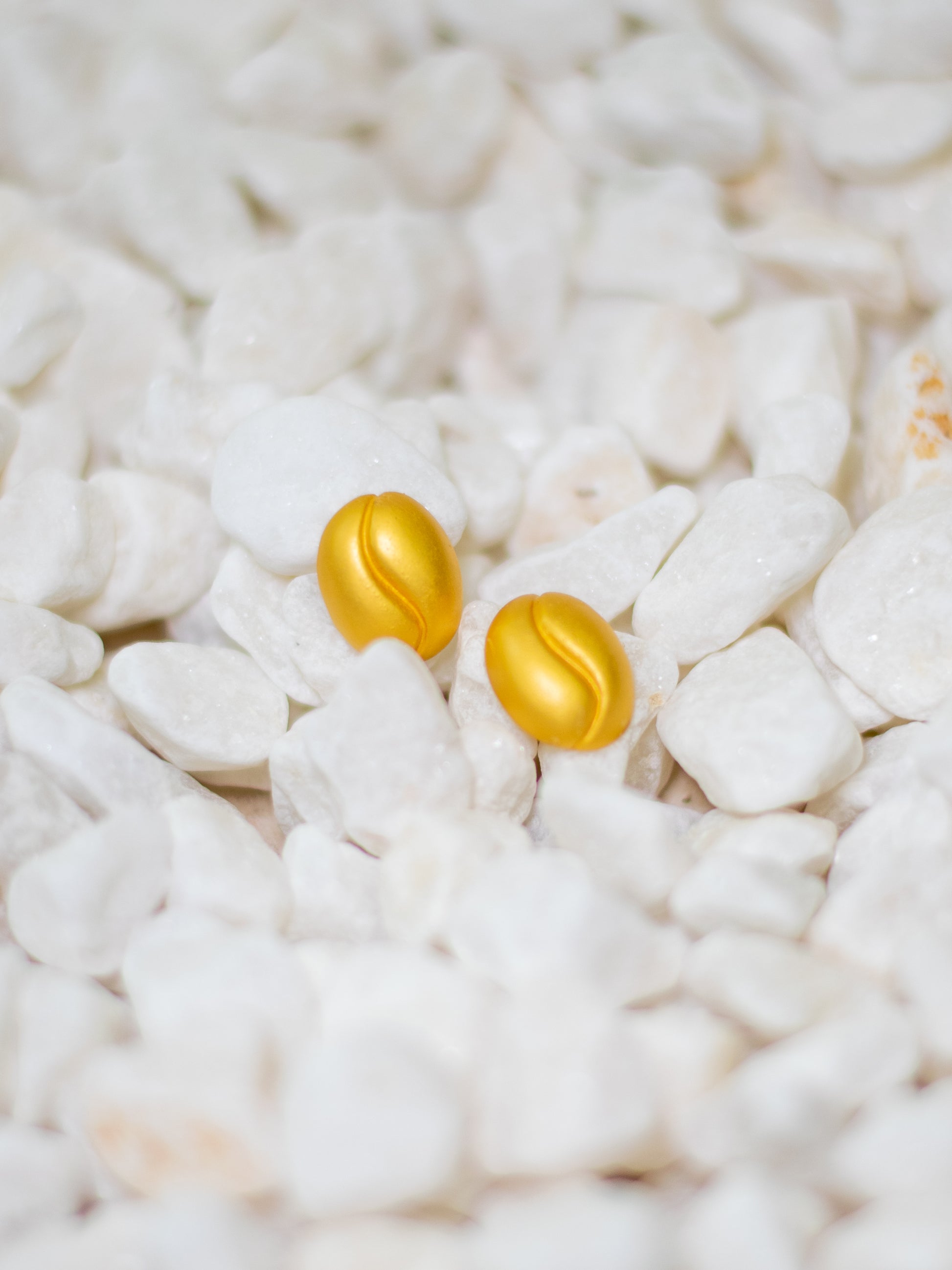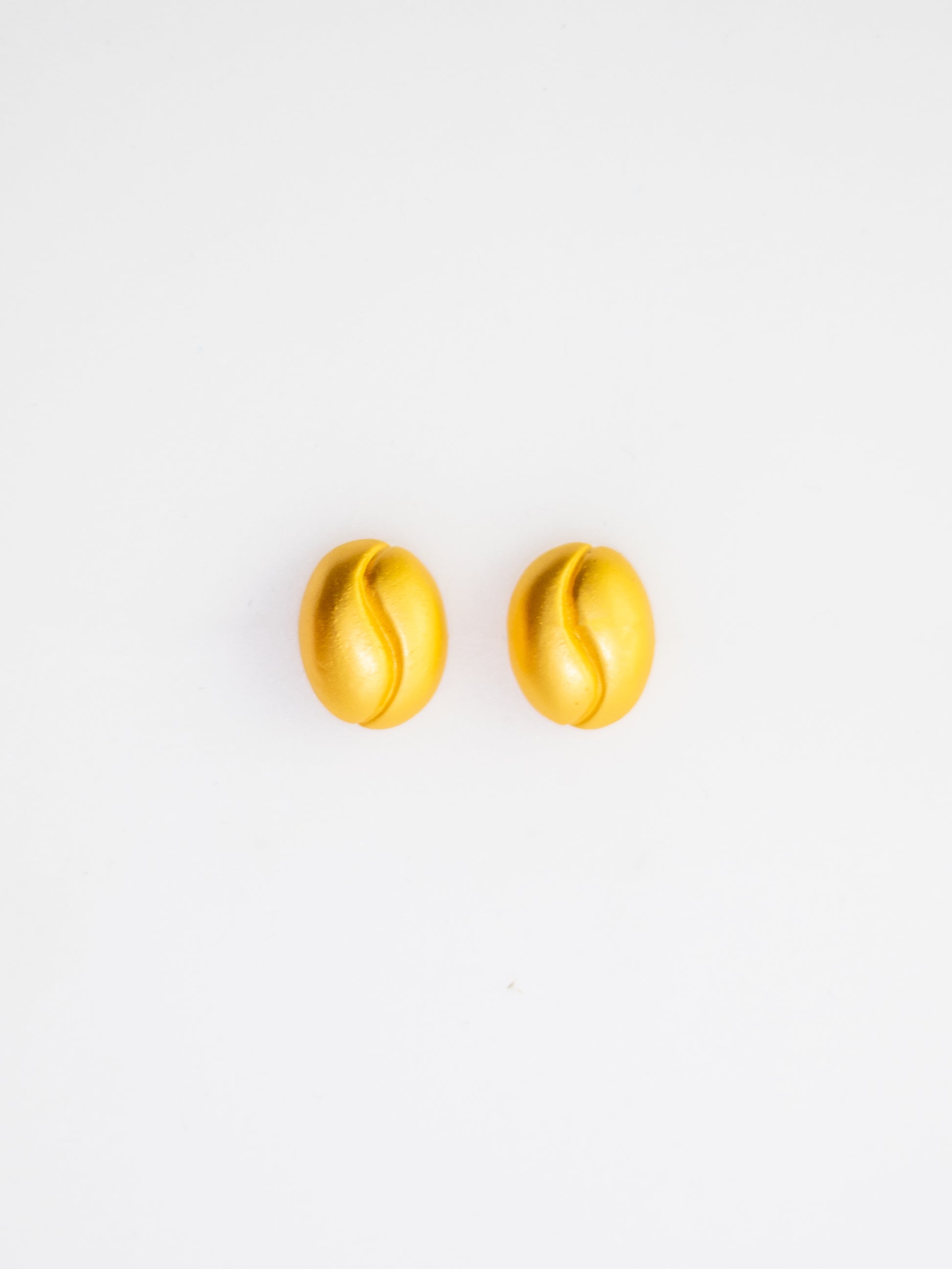 Pre-Columbian Muisca (Nariño) coffee bean earrings plated in 24K gold. Museum reproduction. Handcrafted in Colombia.