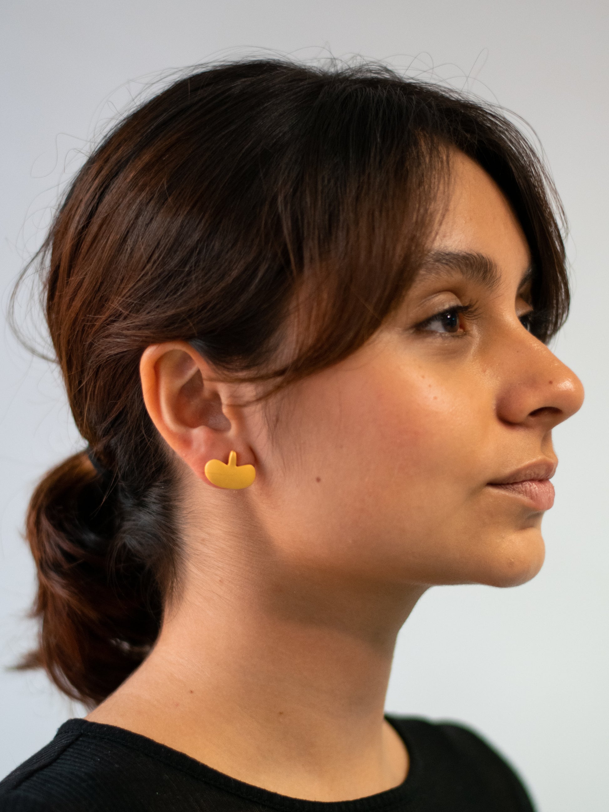 Based on the gold pieces created by pre-Hispanic cultures, earring design based on reproductions of original pieces exhibited in the Colombian Gold Museum.