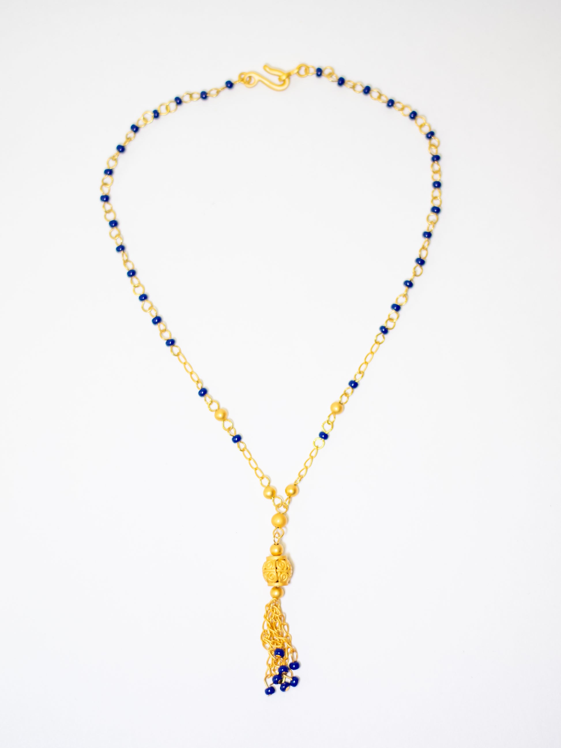 Pre-Columbian Muisca (Nariño) golden and blue jewelry set plated in 24K gold. Museum reproduction. Handcrafted in Colombia.