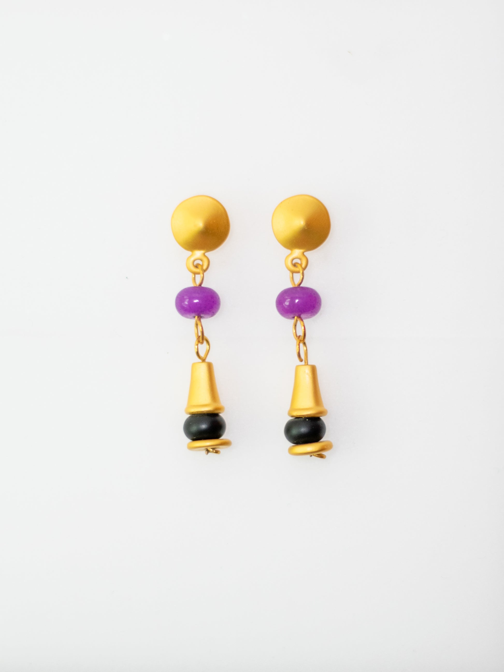 Pre-Columbian Muisca Golden, Black and Purple Jewerly Set. Pre-Columbian Set, Pre-Columbian Jewelry, Handcrafted Jewelry from Colombia. Striking Jewelry Set