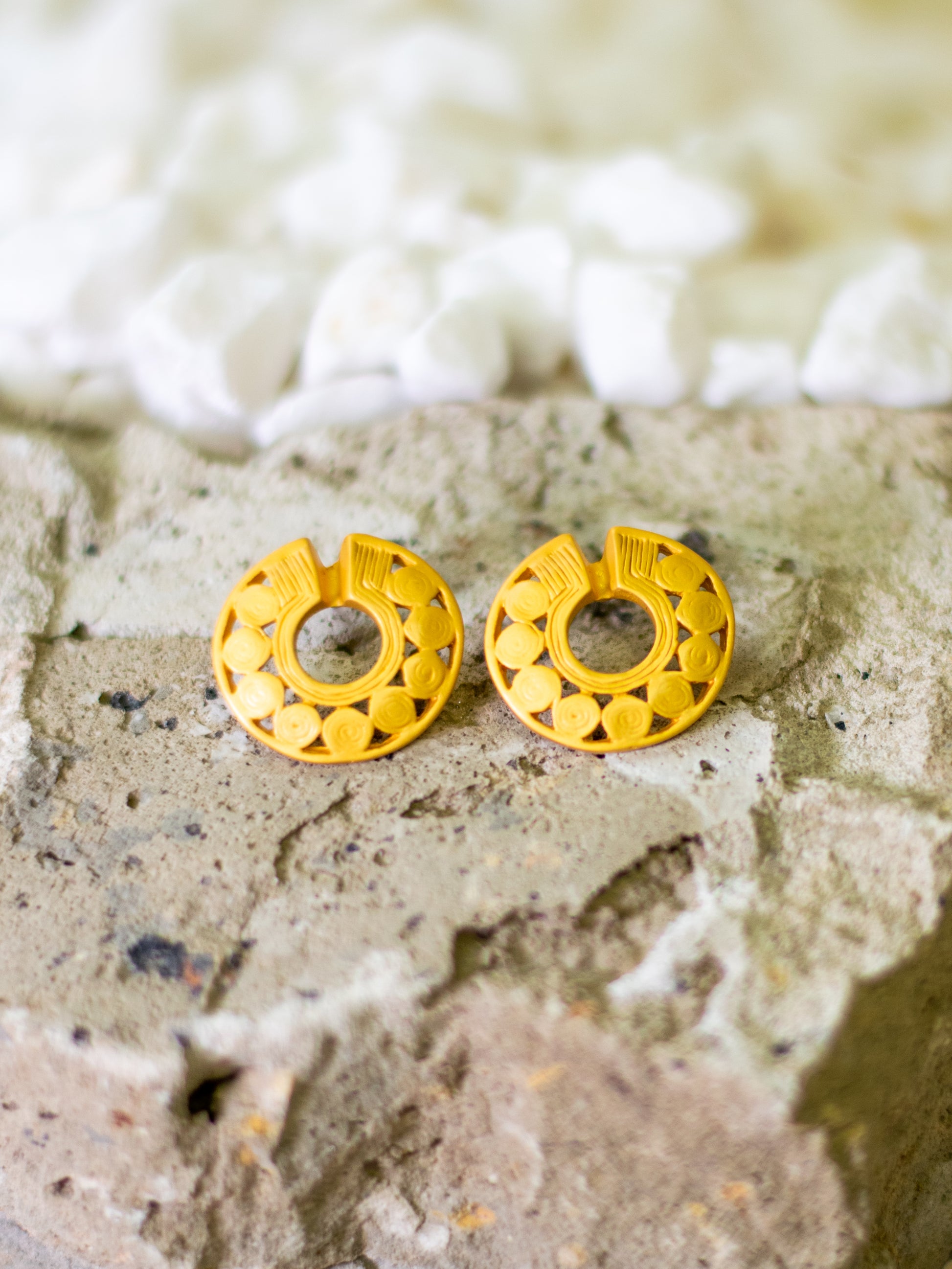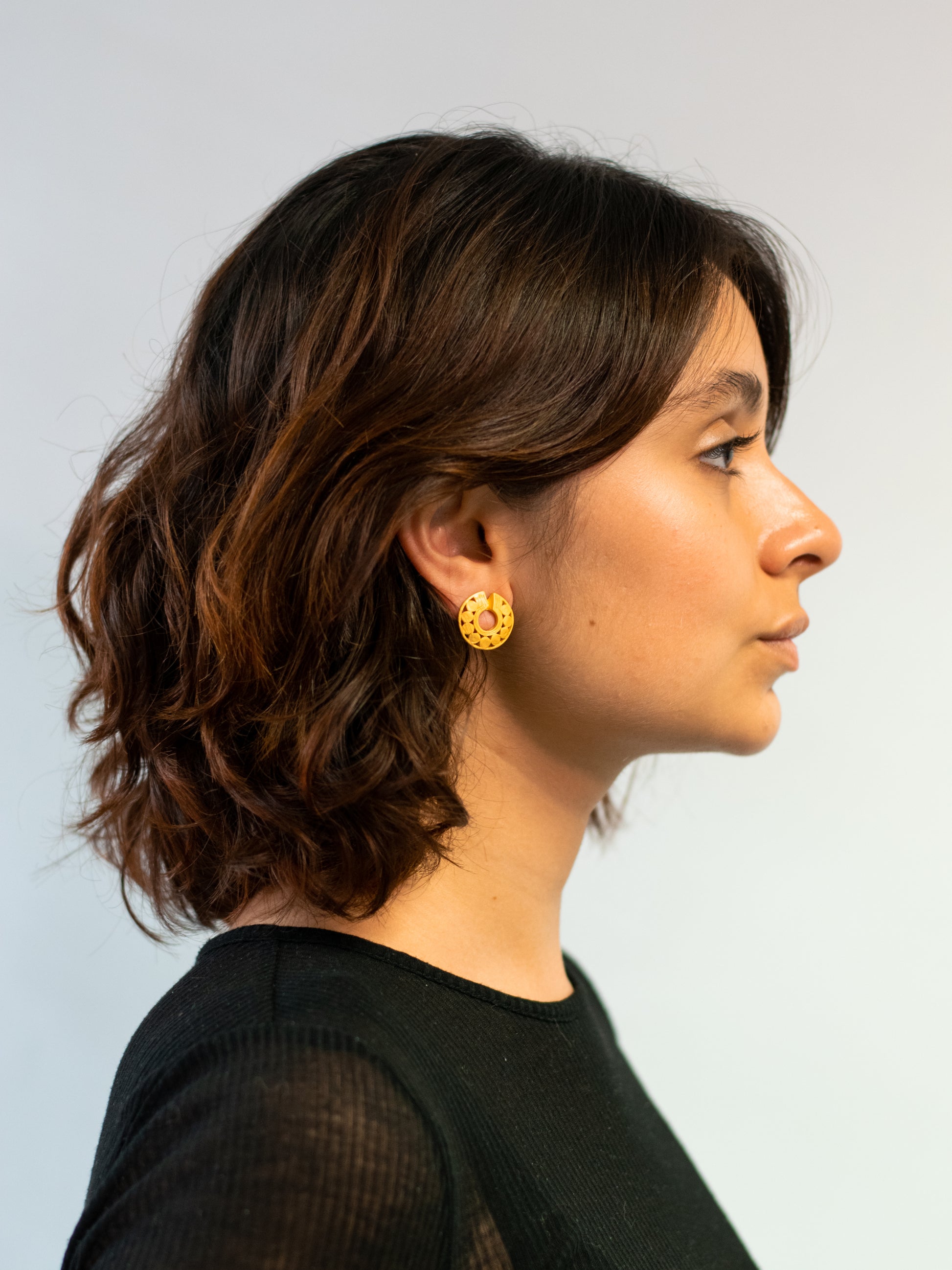 Based on the gold pieces created by pre-Hispanic cultures, earring design based on reproductions of original pieces exhibited in the Colombian Gold Museum.