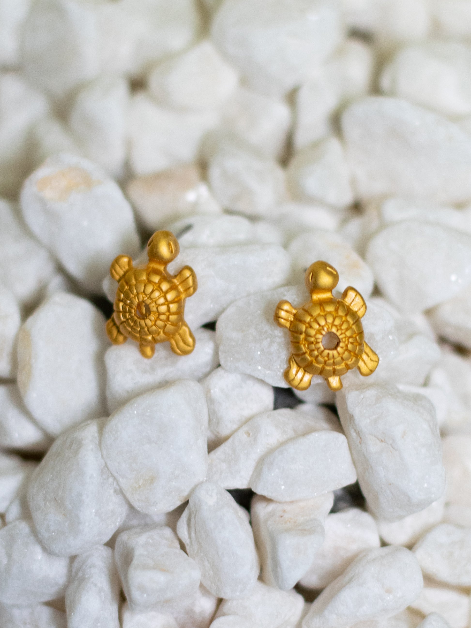 Pre-Columbian Muisca (Nariño) turtle shaped earrings plated in 24K gold. Museum reproduction. Handcrafted in Colombia.