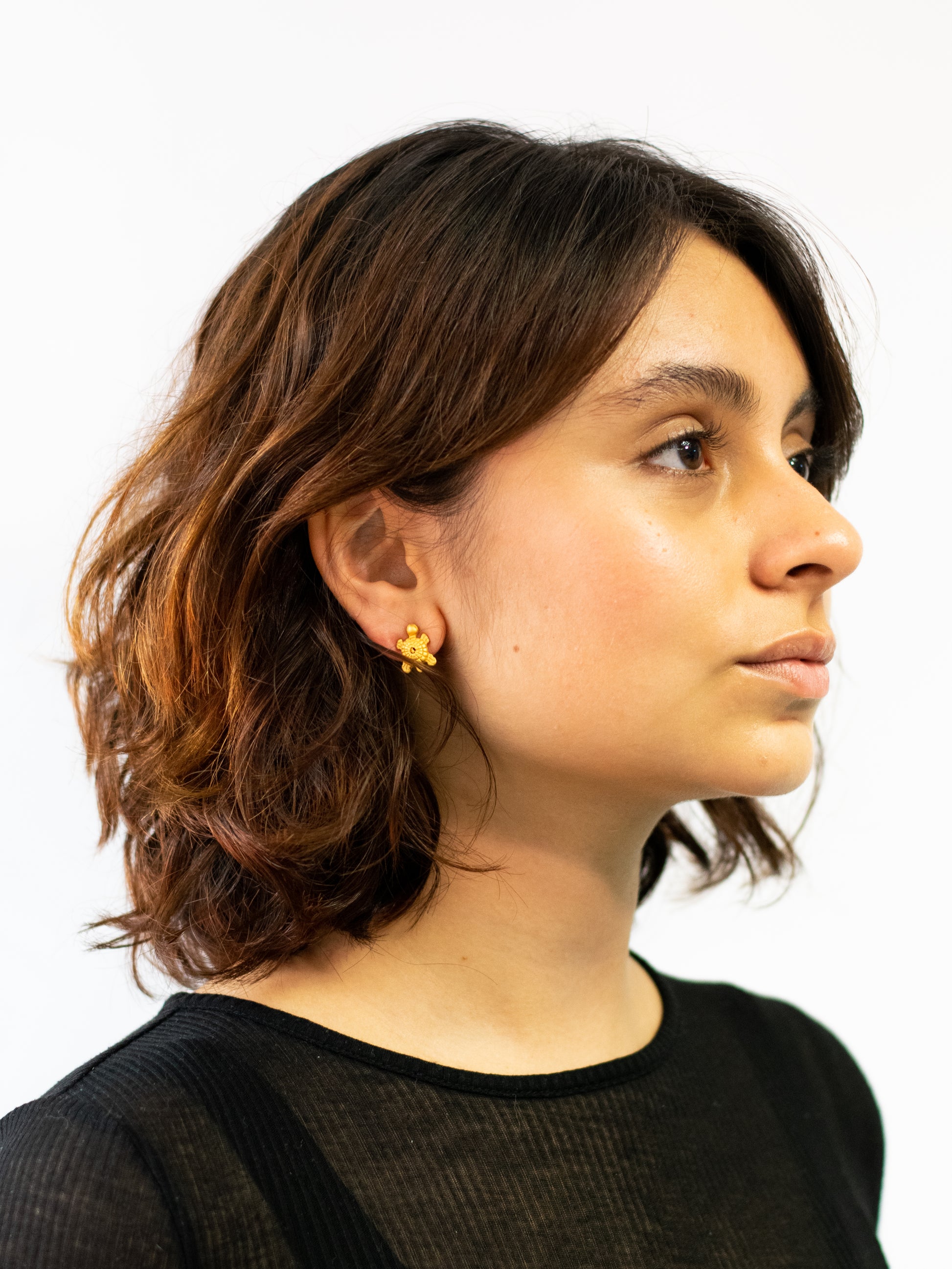 Based on the gold pieces created by pre-Hispanic cultures, earring design based on reproductions of original pieces exhibited in the Colombian Gold Museum.