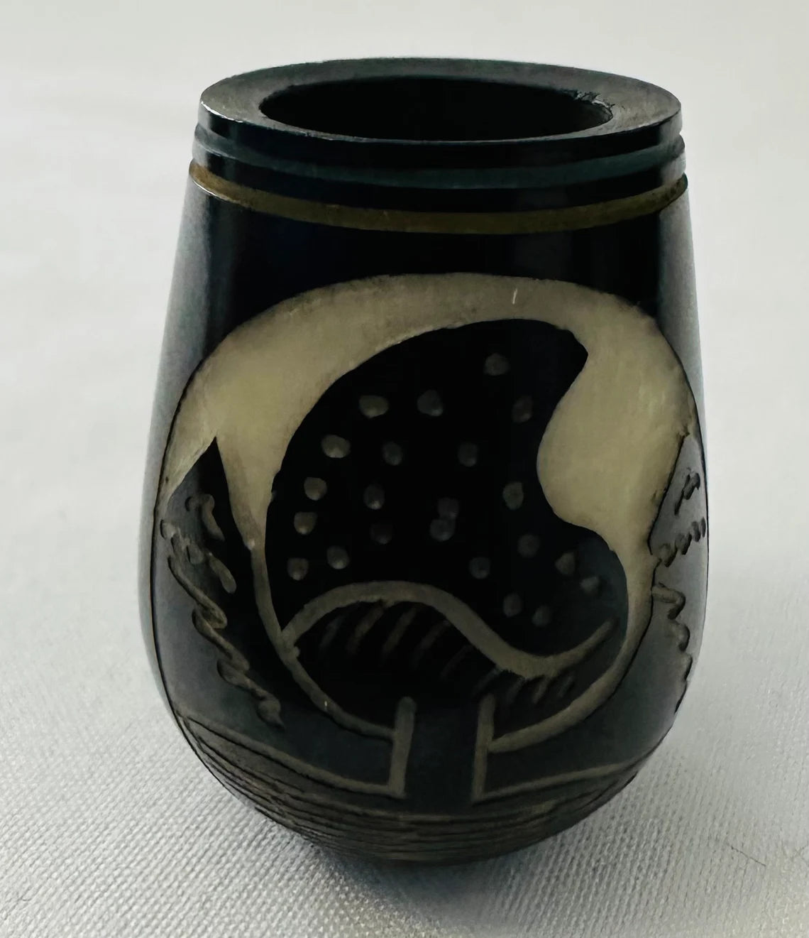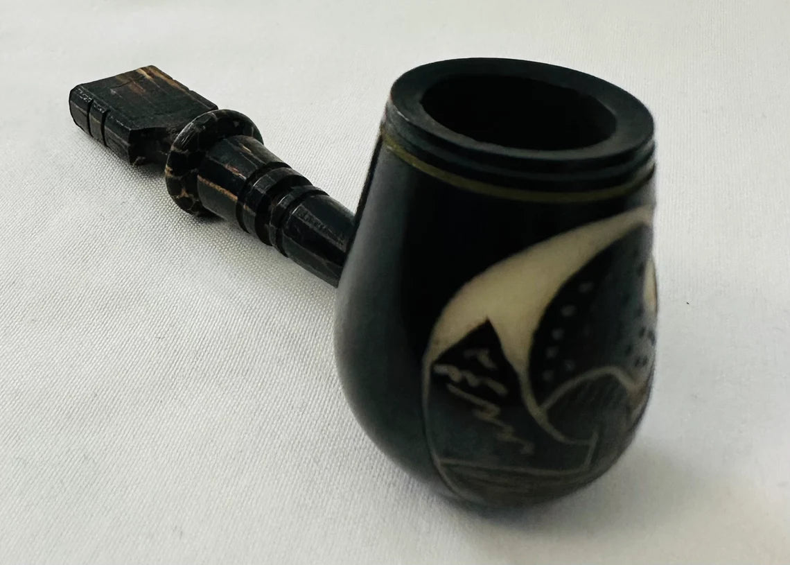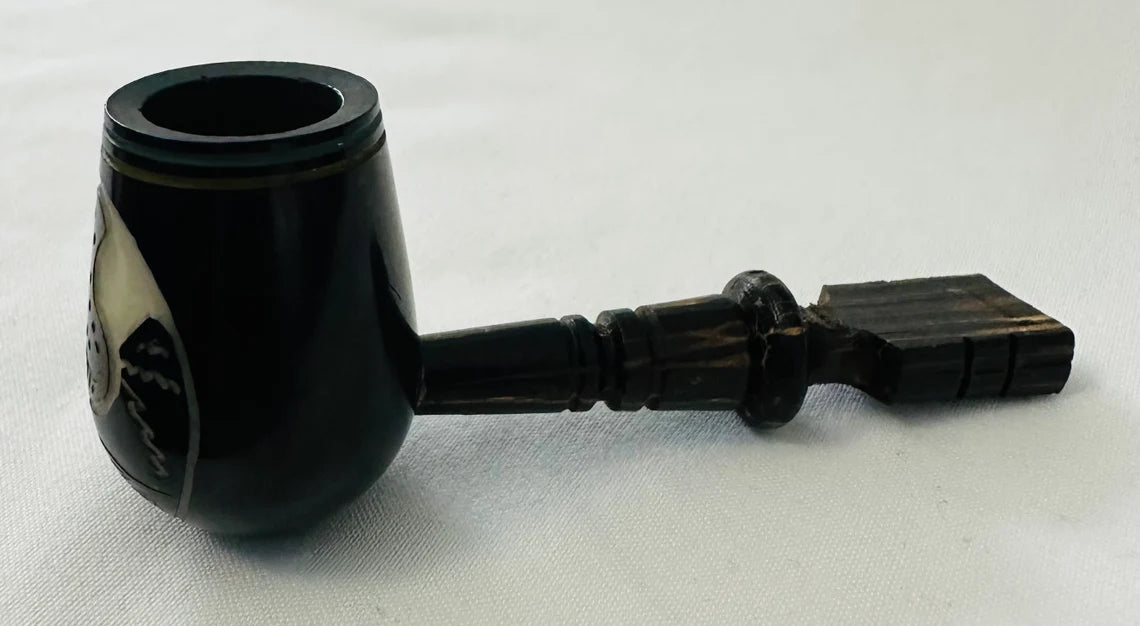 Pipe is completely handmade in tagua - vegetable ivory nuy. These Tagua pipes are hand made by Colombian artisans, each one has been hand carved with an exclusive design.