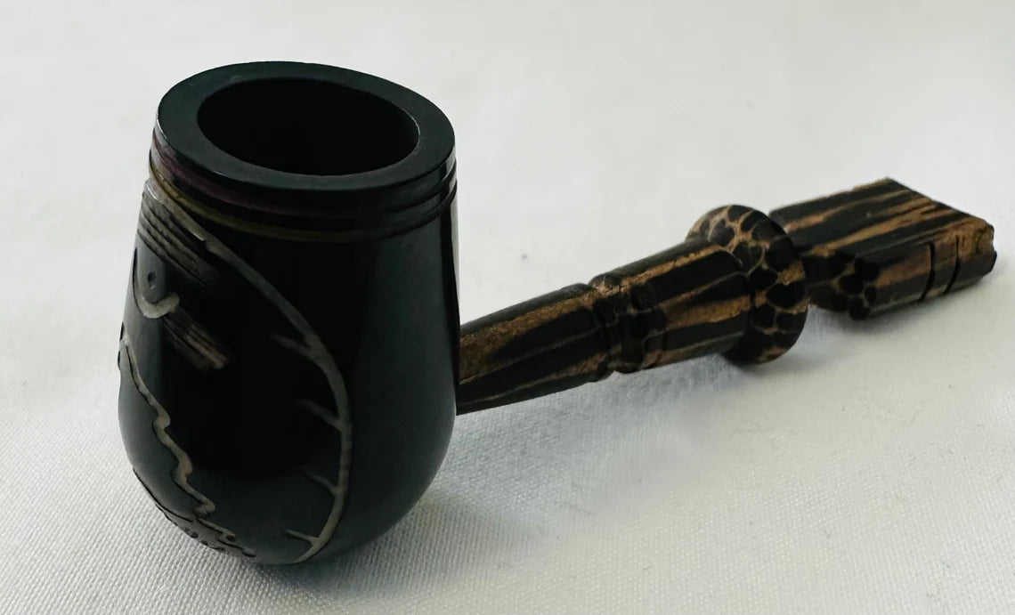 Pipe is completely handmade in tagua - vegetable ivory nuy. These Tagua pipes are hand made by Colombian artisans, each one has been hand carved with an exclusive design.