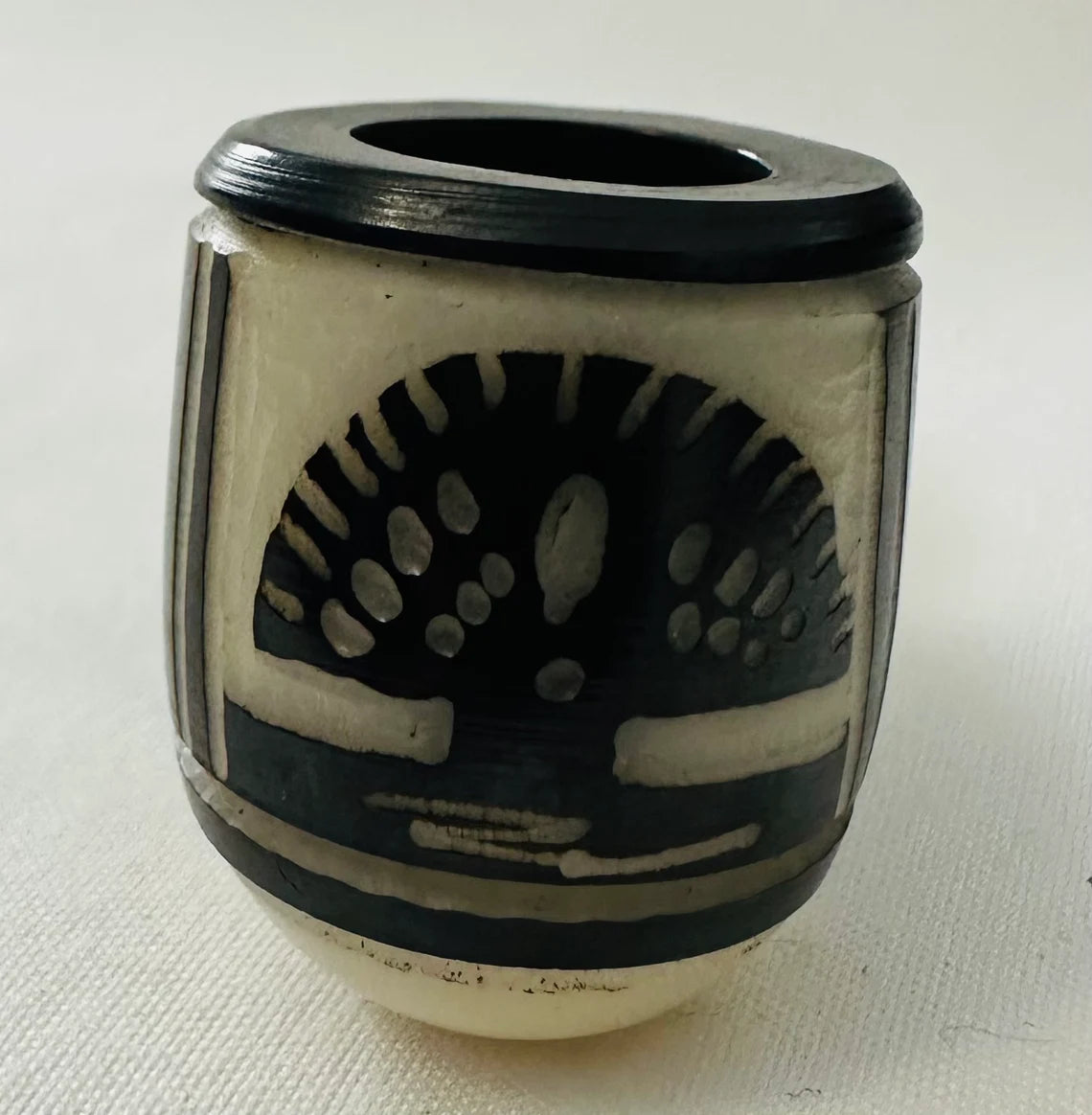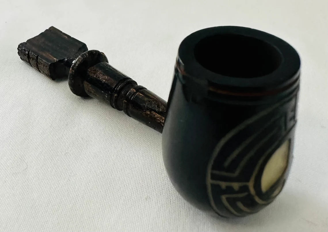 Pipe is completely handmade in tagua - vegetable ivory nuy. These Tagua pipes are hand made by Colombian artisans, each one has been hand carved with an exclusive design.