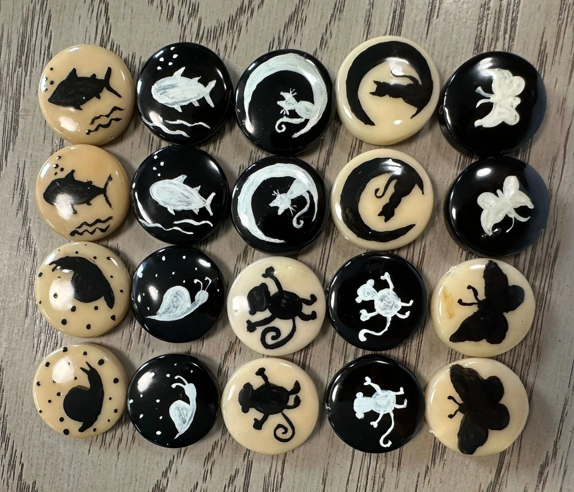 Tagua Animal Beads. 20 Hand Painted Black and White Pieces