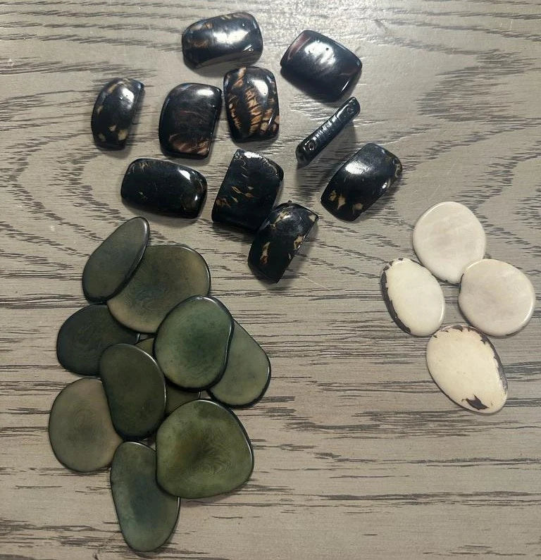 Tagua Nut Beads. 18 beads in 3 colors. Tagua Slices from Colombia.