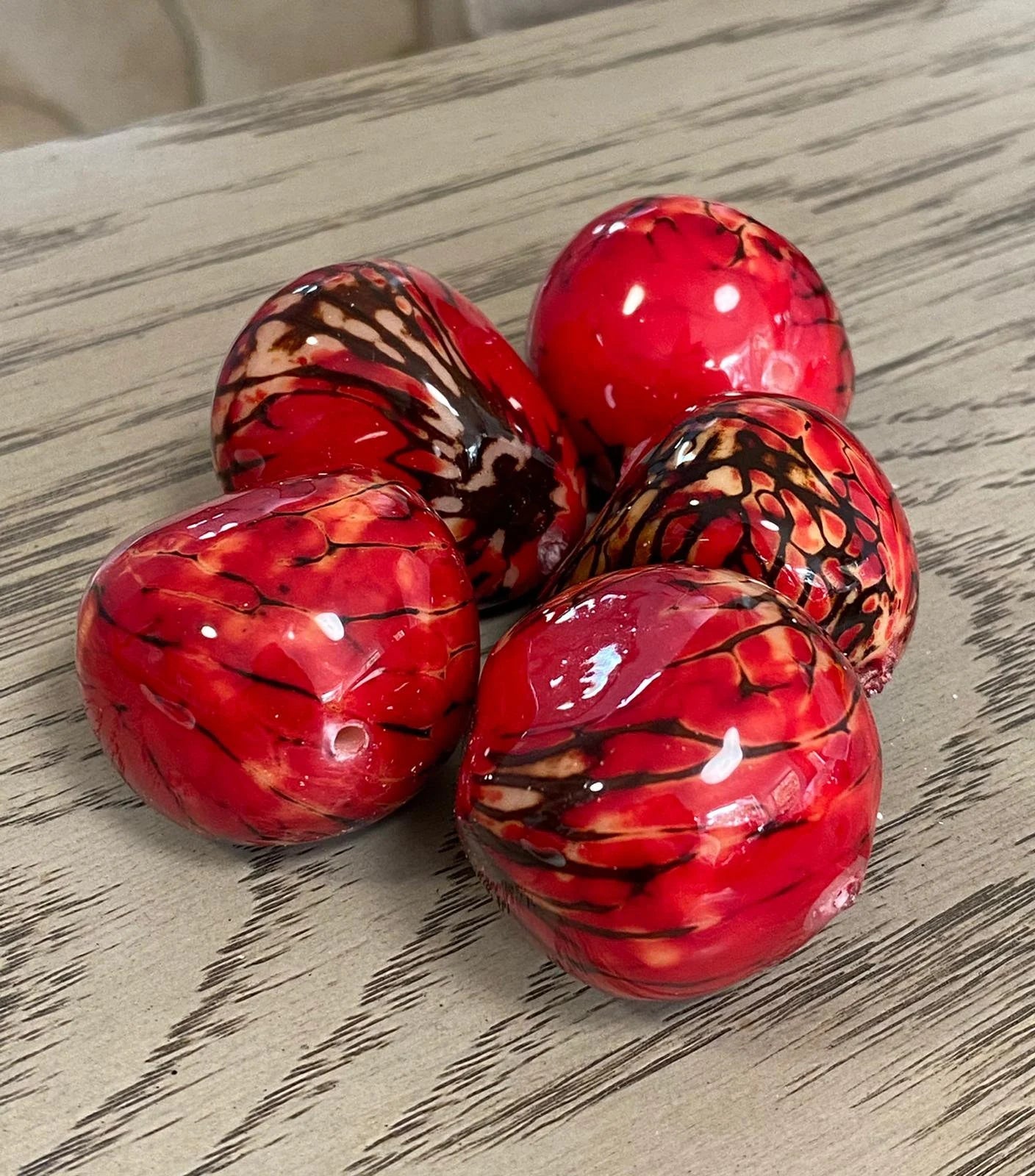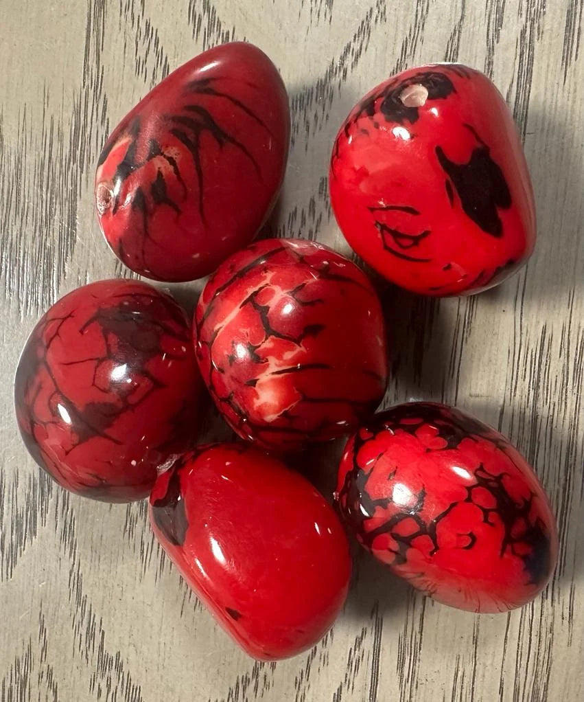 Tagua nut. Whole tagua from Colombia in Red. 6 pcs. Size 3.5x3.5 cm. approx. Top Drilled. Woodwork. Carving. Eco Sustainable Jewerly Making