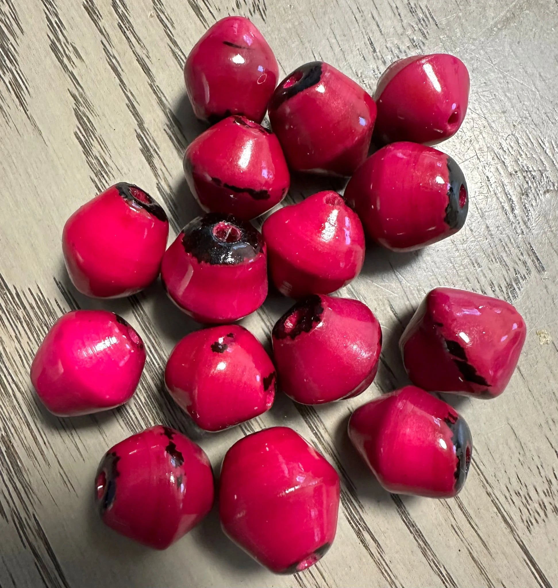 Tagua Bicone Beads. 15 Fuchsia Pieces.