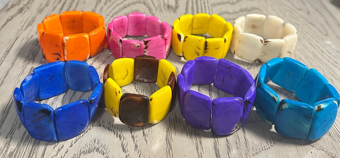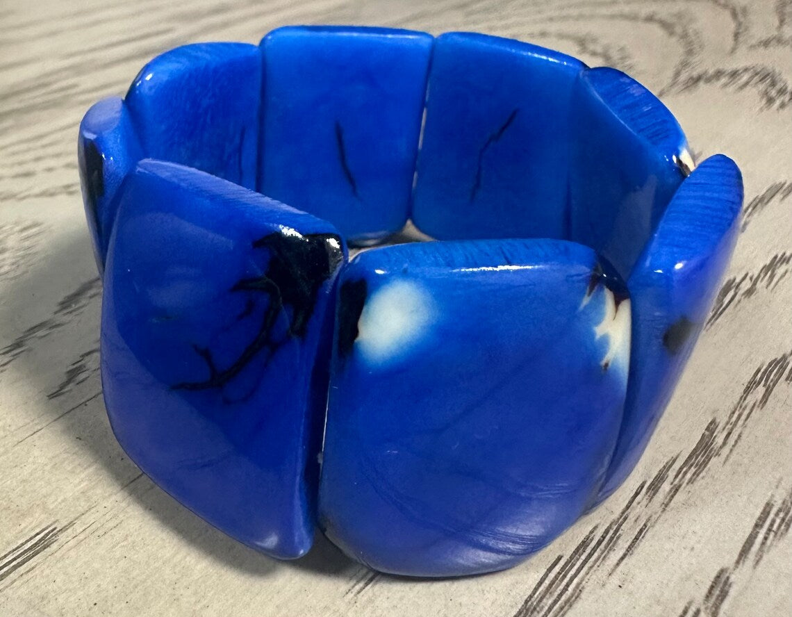 Tagua bracelet. bracelet handmade in Colombia. Gifts for Women. Tagua Organic Nut Strech Blue Bracelet. Eco-friendly. Free Shipping