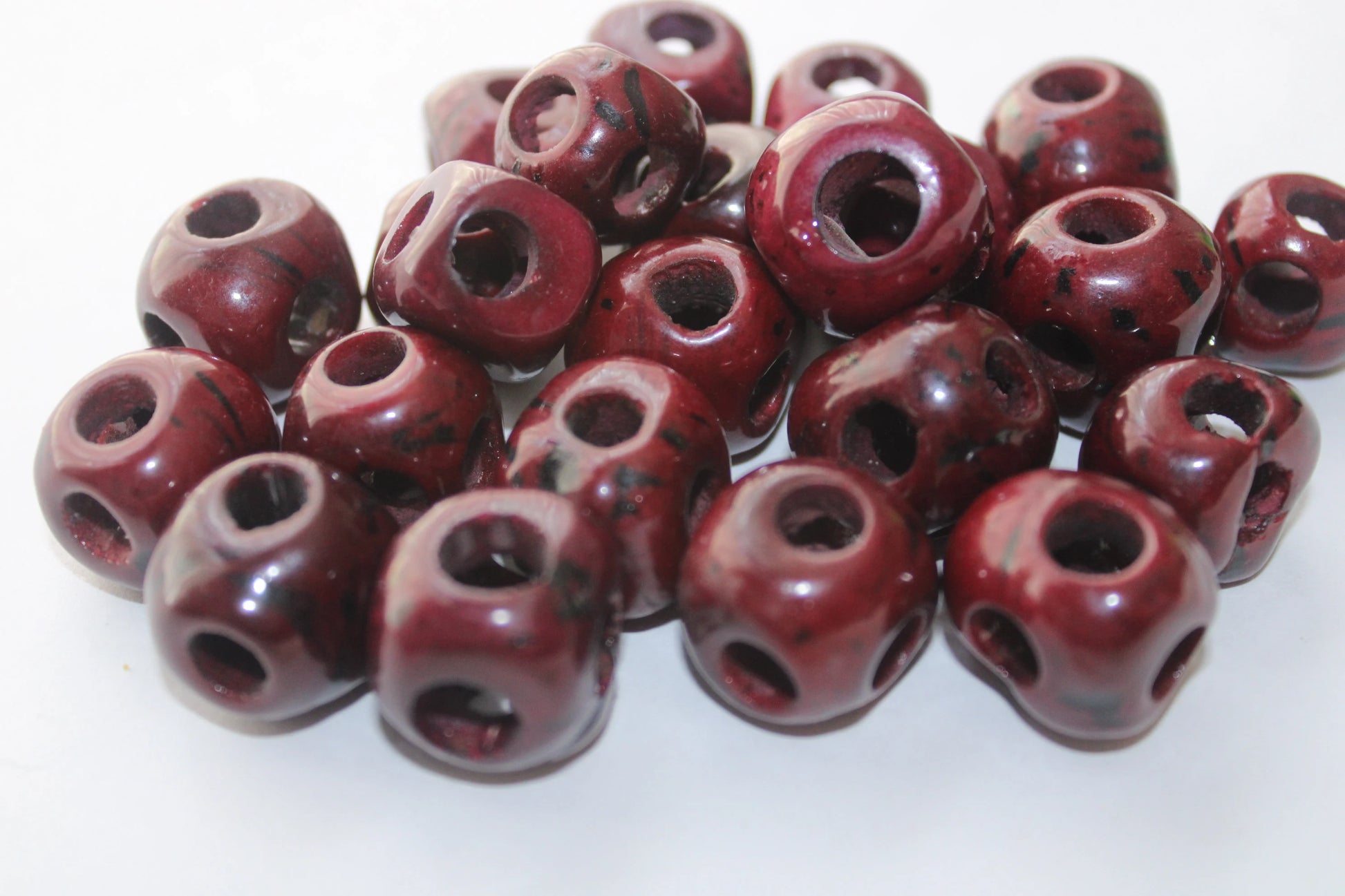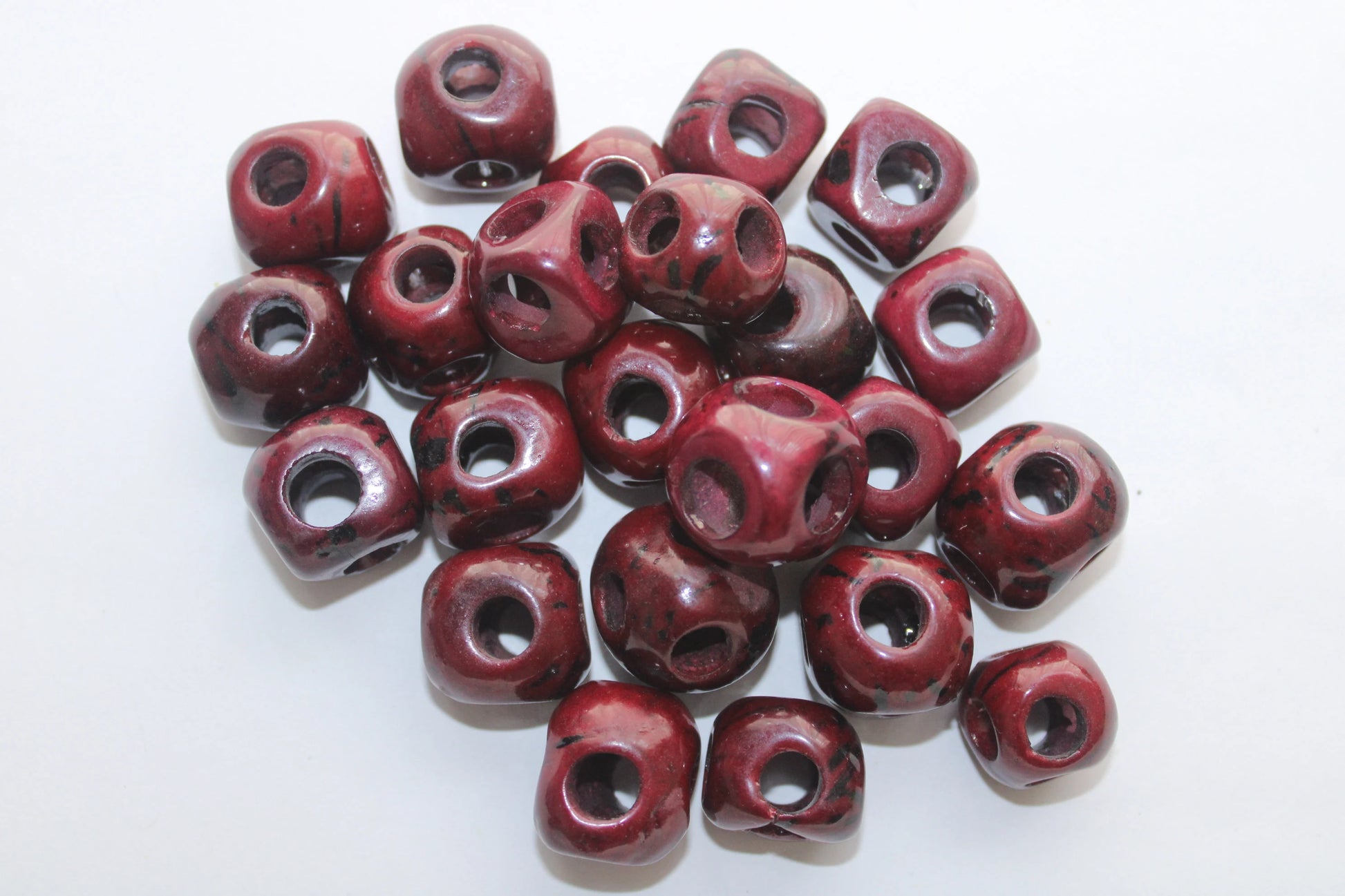 Tagua Cubes Beads. 20 Dark Red Pieces.