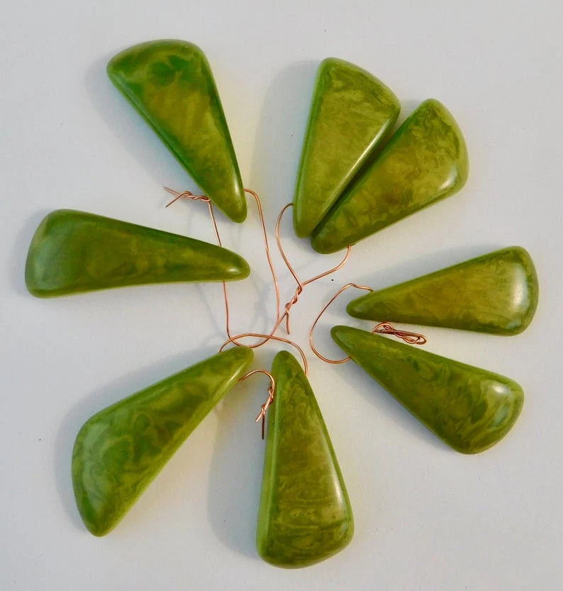 Tagua Beads Seed Beads | 12 Green Tagua Triangles | 2.5x1.8 inches | Side Drilled 2 Holes | Ethical Eco Sustainable Jewelry Making Handmade