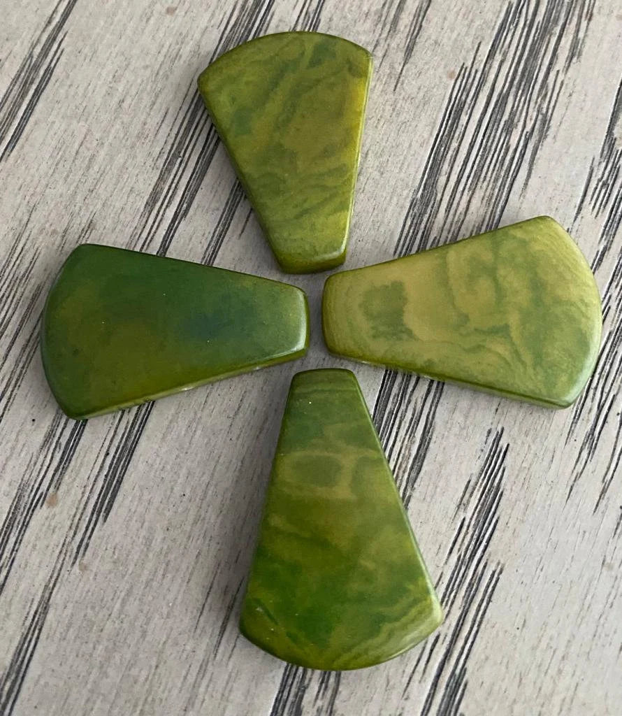 Tagua Curved Triangle Beads. 10 Green Pieces