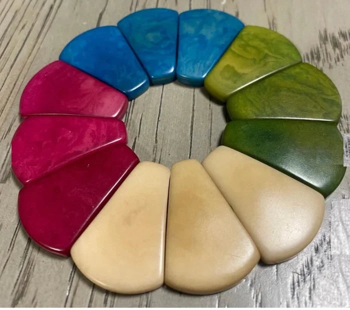 Tagua Curved Triangle Beads. 9 Blue Pieces