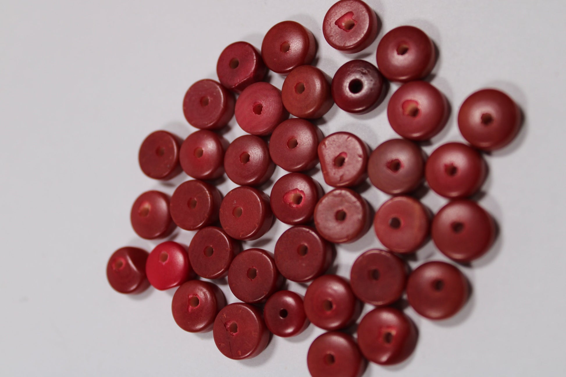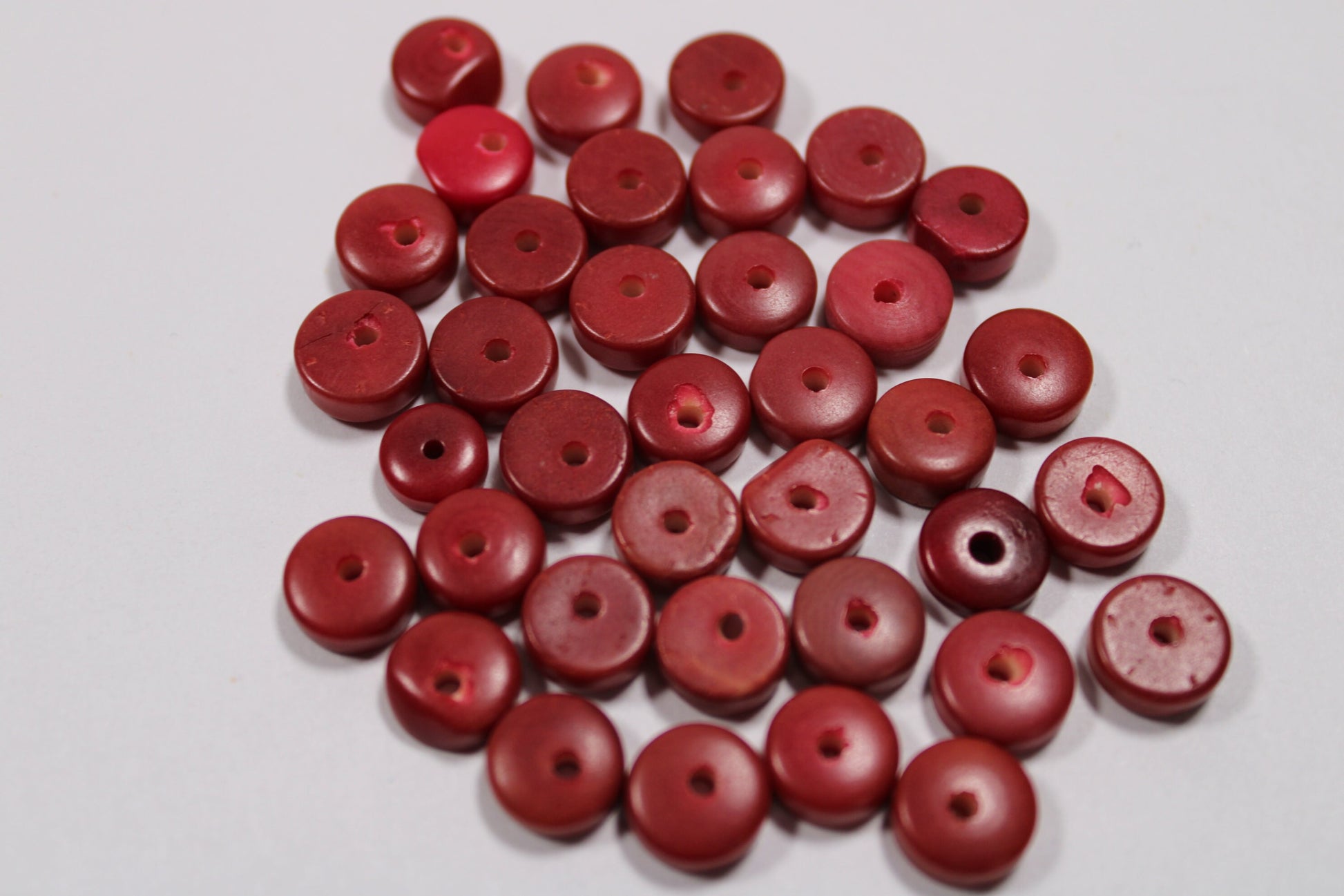 Tagua Donut Beads. 32 Mini Red Pieces.