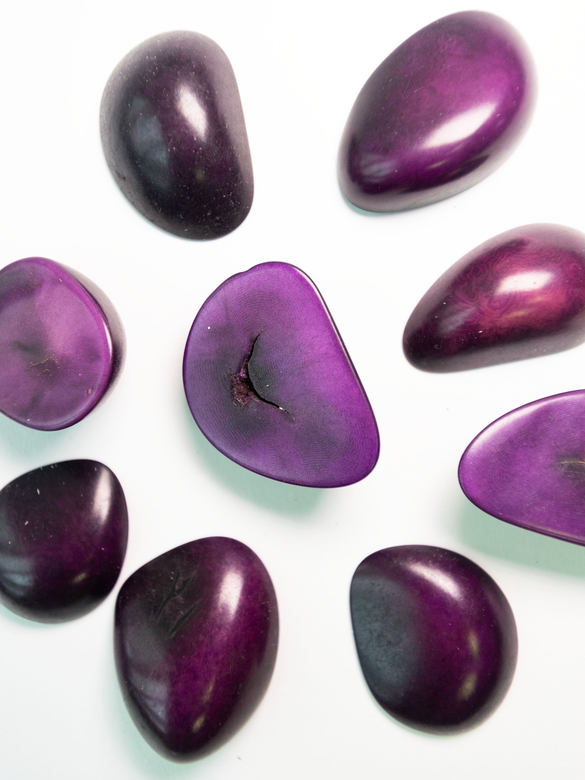 Tagua Beads Teadrops - Half Ball Beads | 10 Seed beads in Purple | Eco Beads Jewelry Making Undrilled Sustainable Jewelry Carving Woodwork