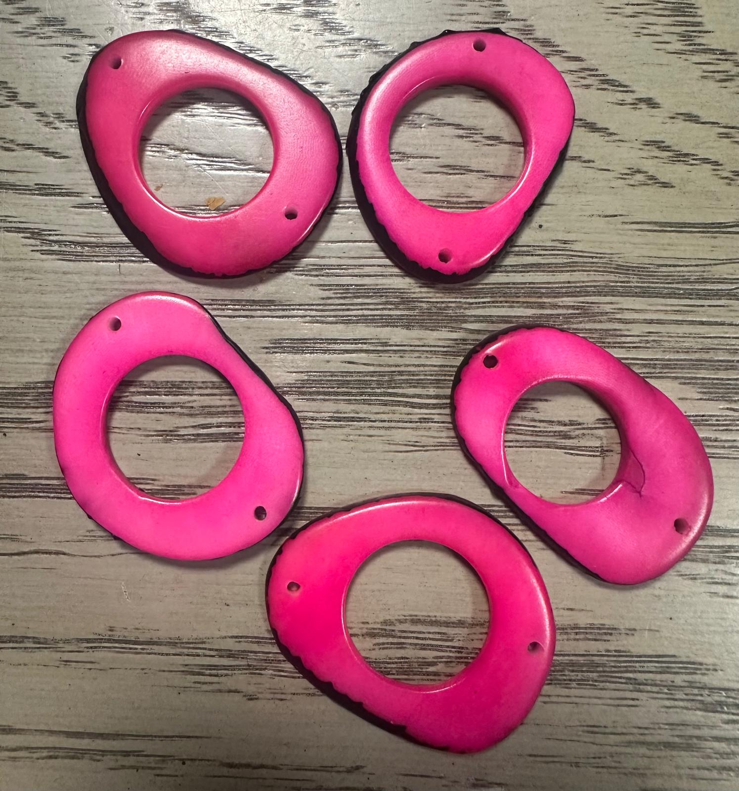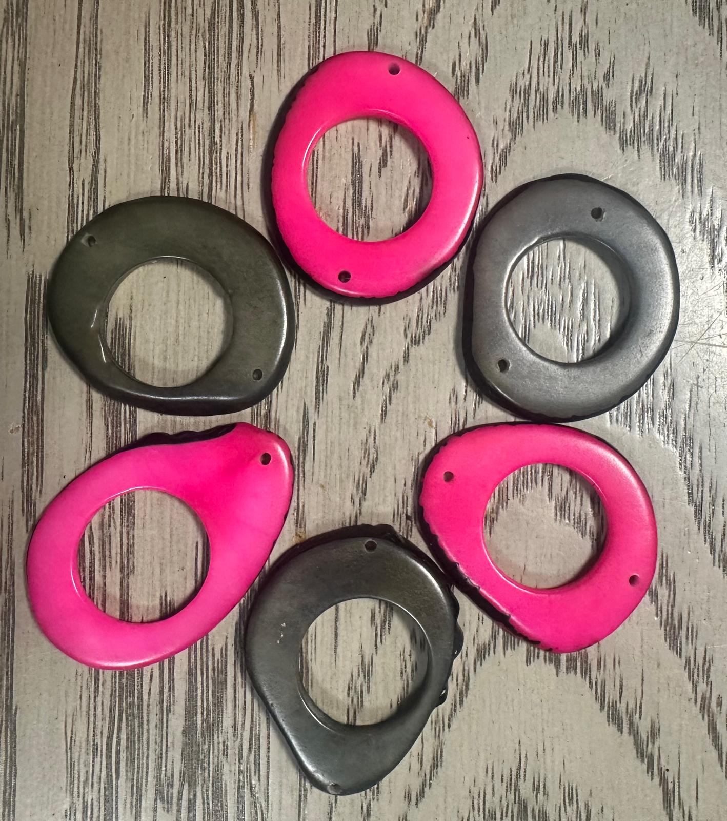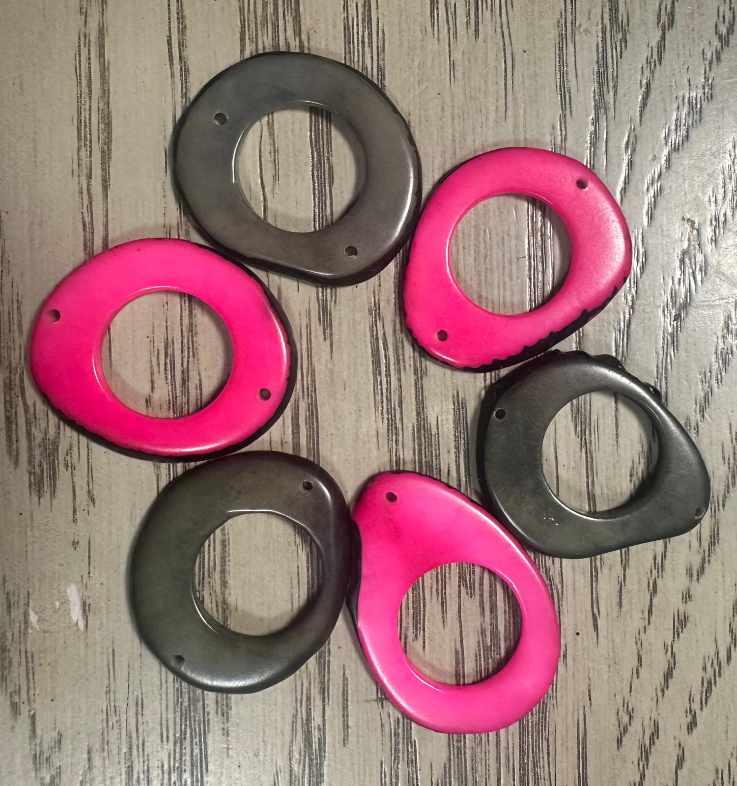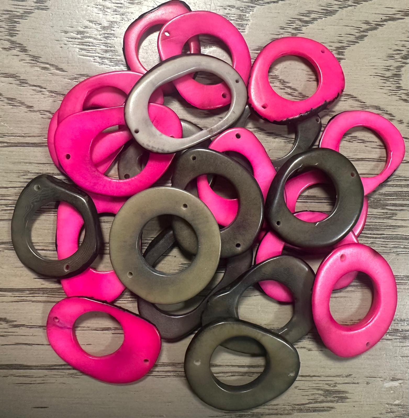 Tagua Hoop Beads. 20 Pink and Grey Pieces.