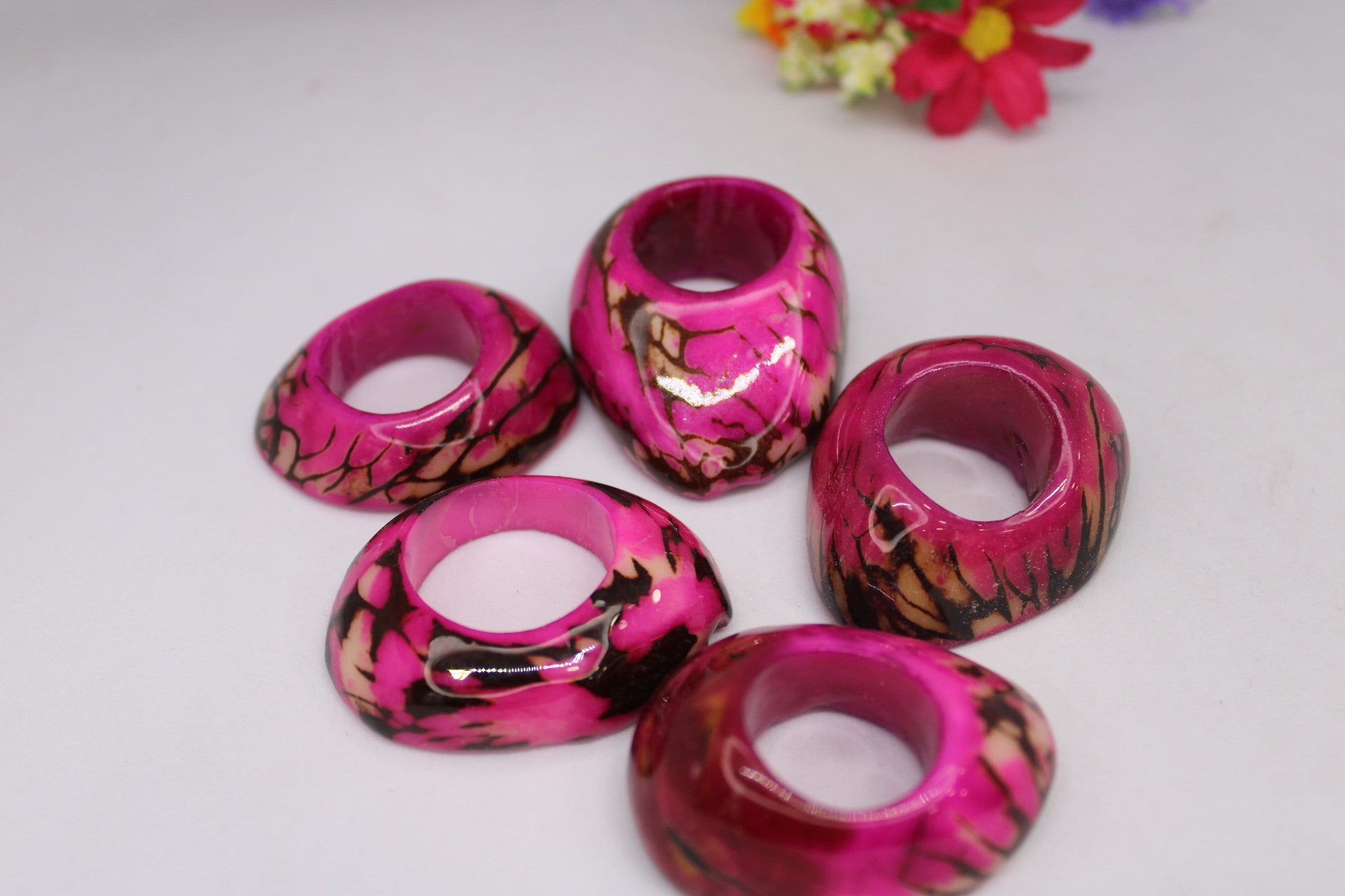 Tagua Hoop Beads. 6 Pink & Black Pieces