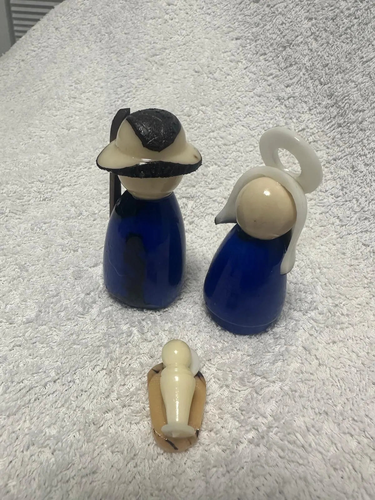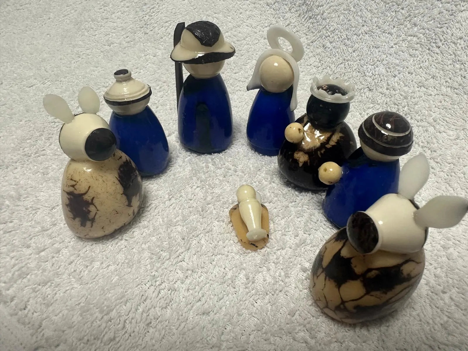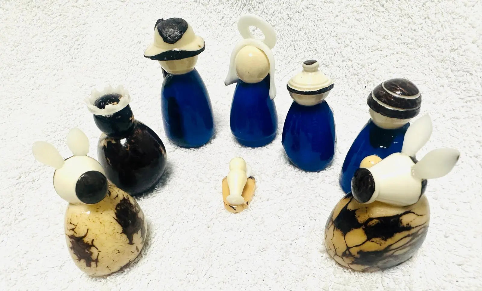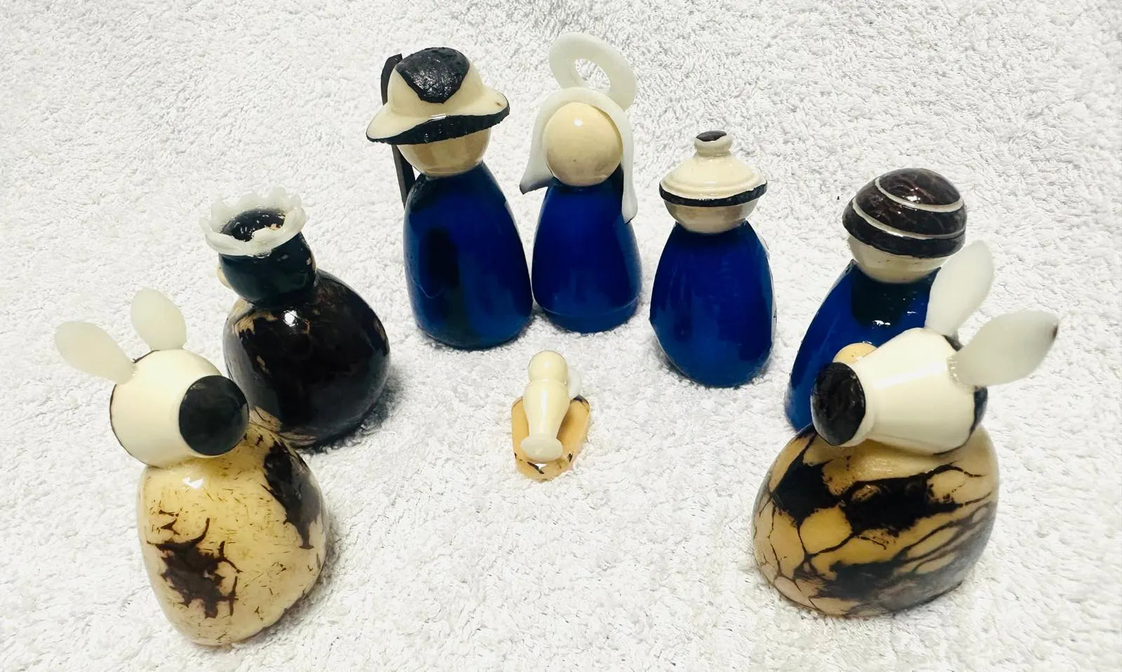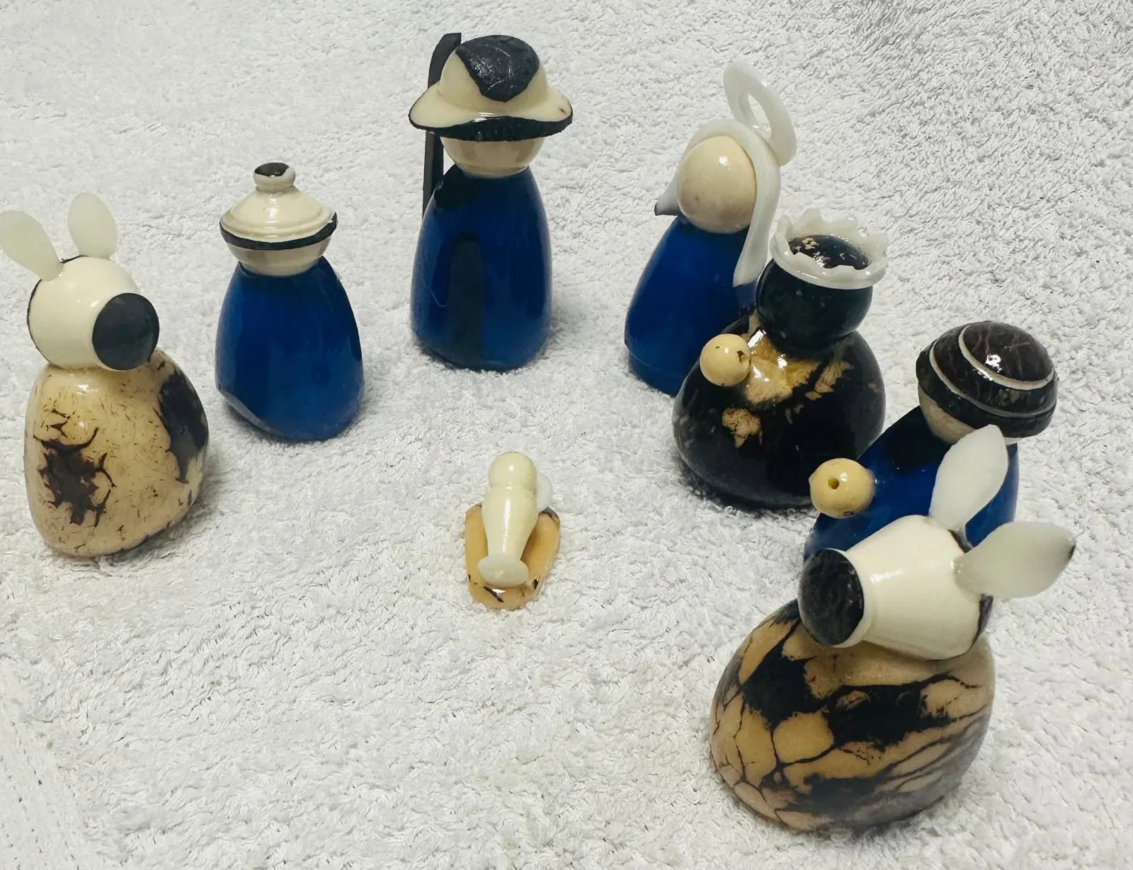 Tagua Nativity Set in Dark Blue and Brown.