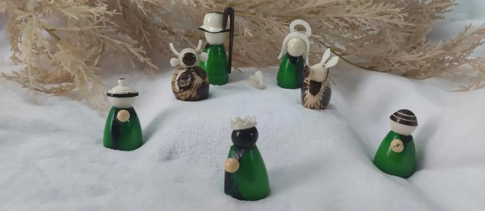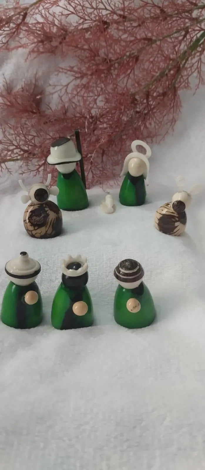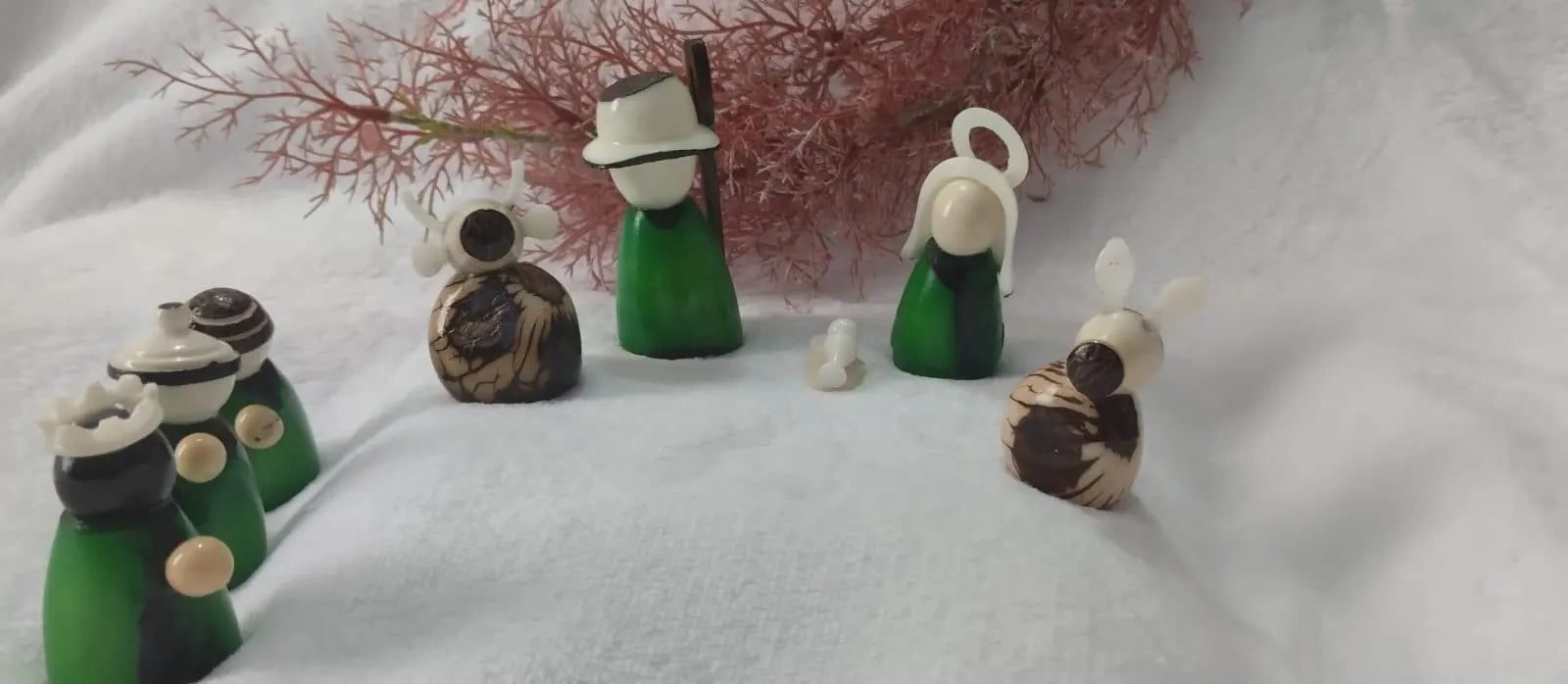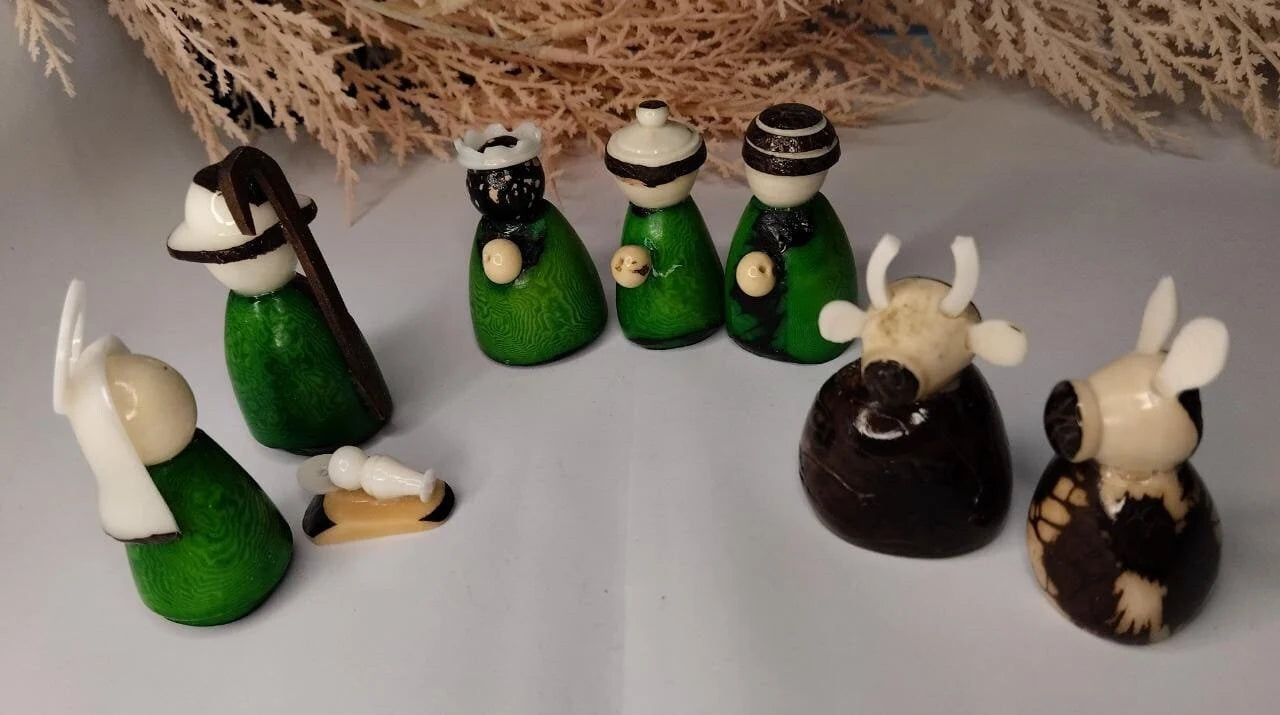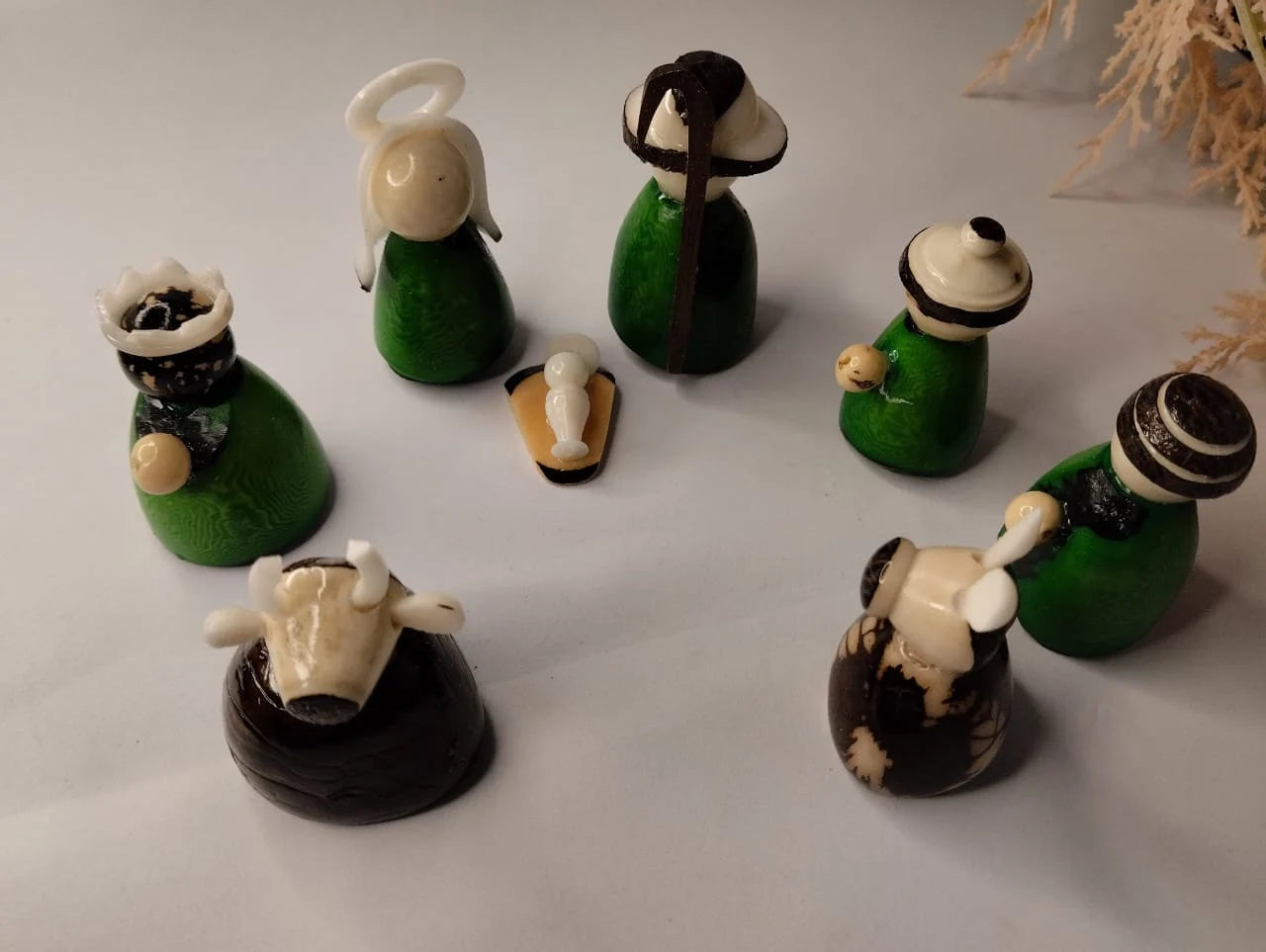 Nativity Green Set Handmade in Tagua Miniature | Nativity figurines | Christmas Nativity | Ivory Nut | Nativity Scene from Colombia | Free Shipping | Fair trade