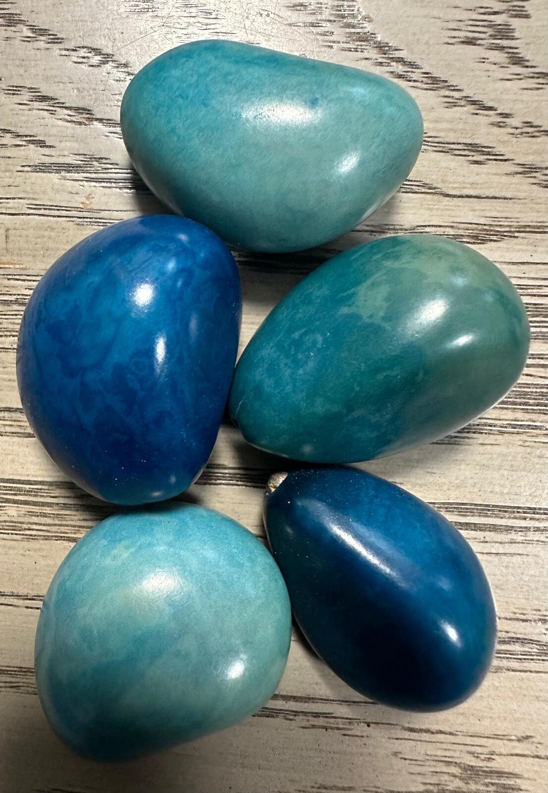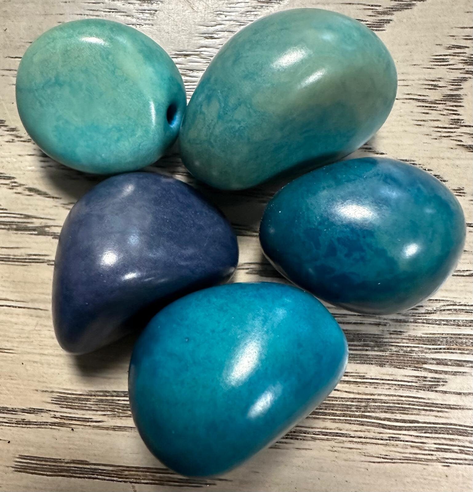 Tagua Nut Whole Seed Beads Mix of Blue Colors | Mix of Big & Small Sizes | 5 Nuts | 3 to 5 cm. tall | Undrilled Eco Jewelry Making Carving
